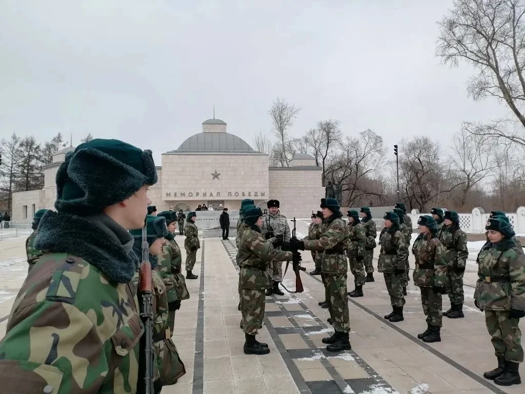 20 февраля 2026 года заступающий почётный караул Гимназии №14 приведен к ПРИСЯГЕ ПОСТОВЦА.