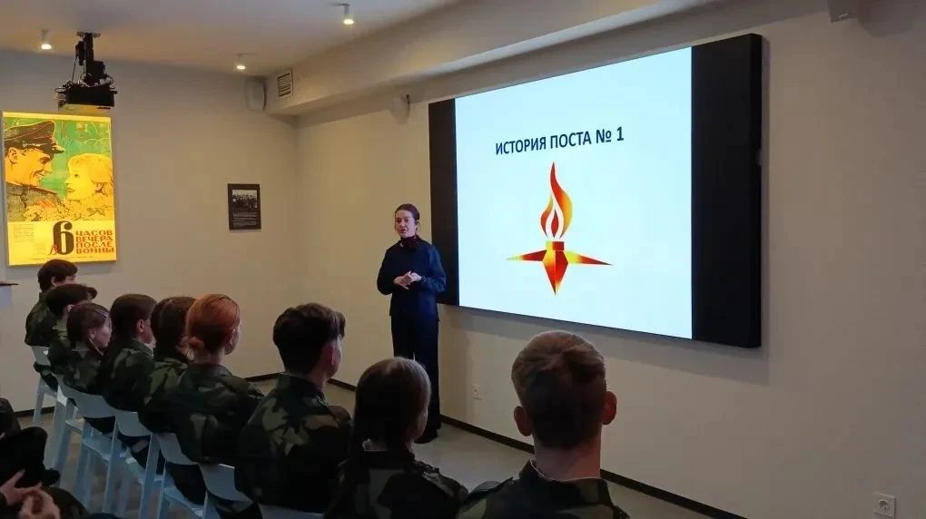 Ребята прорабатывали смену часовых и дневальных под руководством заместителя начальника Штаба Поста №1 Васильева Кирилла Дмитриевича. После тренировок состоялась встреча с сотрудником музея «Мемориал Победы» Ириной Сергеевной Ивко, которая в ходе экскурсии познакомила с обновленными музейными экспозициями, с историей Поста №1 в городе Красноярске, рассказала о жизни красноярцев в годы Великой Отечественной войны.