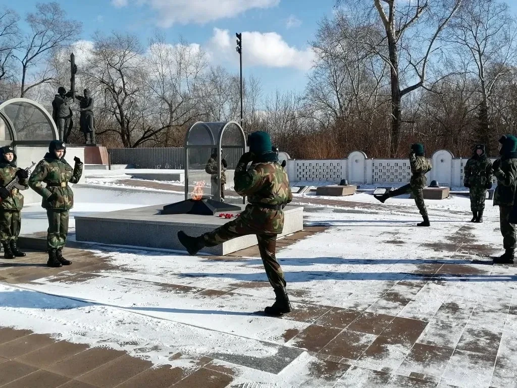 На улице мороз. Постовцы готовы нести почетную службу у Вечного огня Боевой Славы на Посту №1.