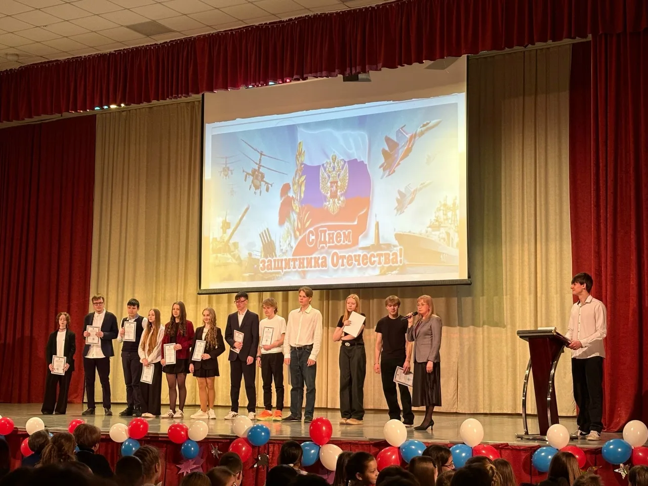 Сегодня в нашей школе прошел торжественный концерт, посвященный Дню Защитника Отечества. На концерте присутствовали гости: почетные жители нашего города Красноярска, члены Регионального общества «Блокадник»; подполковник Гамбург Александр Александрович, председатель Красноярского регионального отделения Российского Союза ветеранов и подполковник Шамрай Сергей Михайлович, а также выпускники школы, ветераны и участники специальной военной операции, родители наших выпускников, участников СВО.