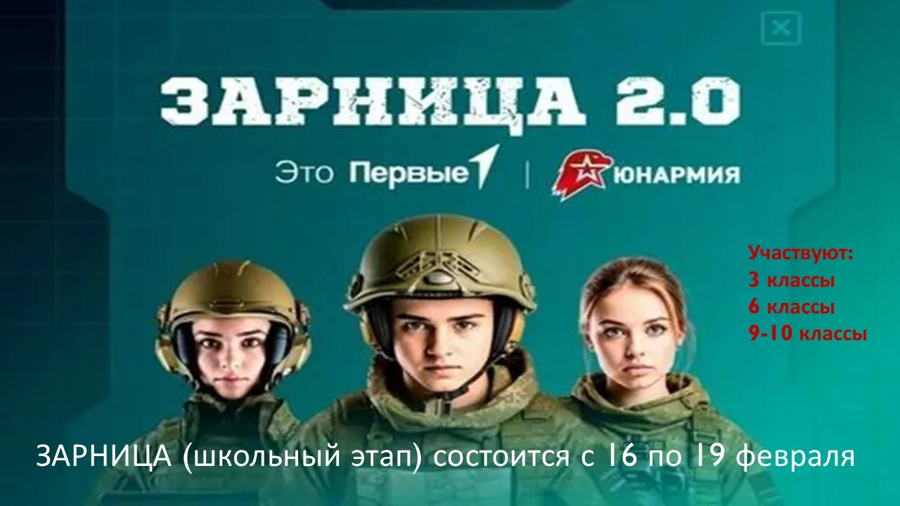 Завтра 17 февраля у нас в "Зарницу" играют - 6 классы, а в среду 18 февраля - старшие ребята, 9 классы!