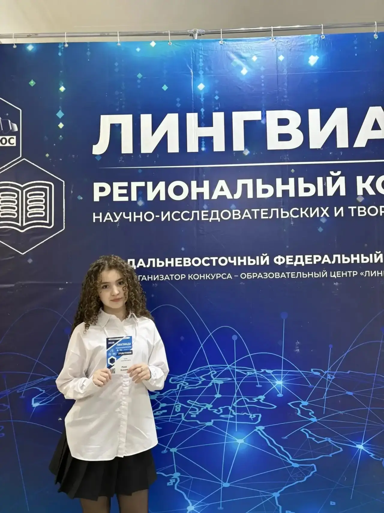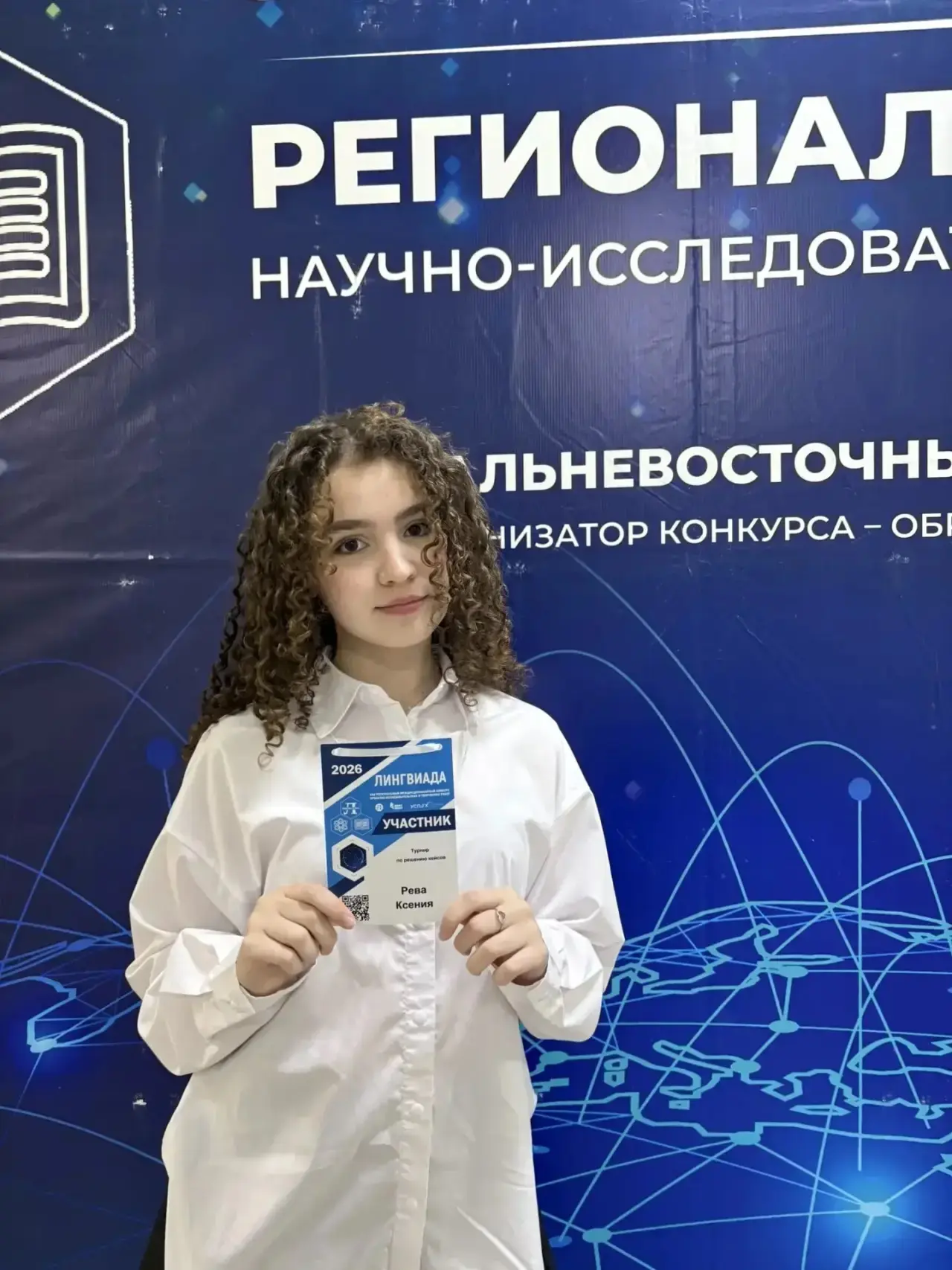 Ученица 7 «Б» класса, Рева Ксения, приняла участие в 22-м Региональном междисциплинарном конкурсе «Лингвиада» в Образовательном центре «Лингва-Плюс»! Тема этого года - «Будущее начинается здесь»