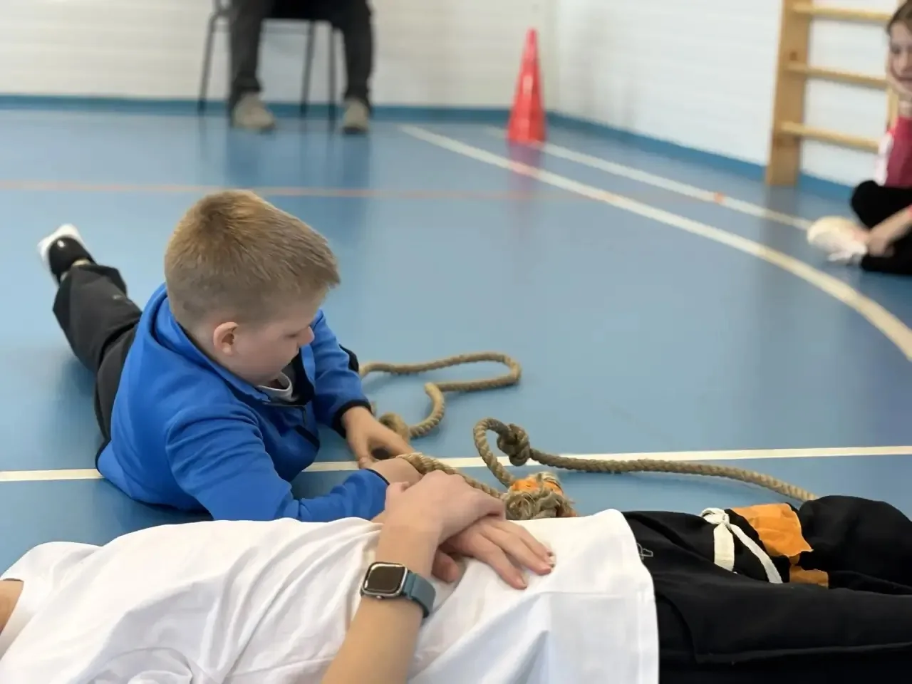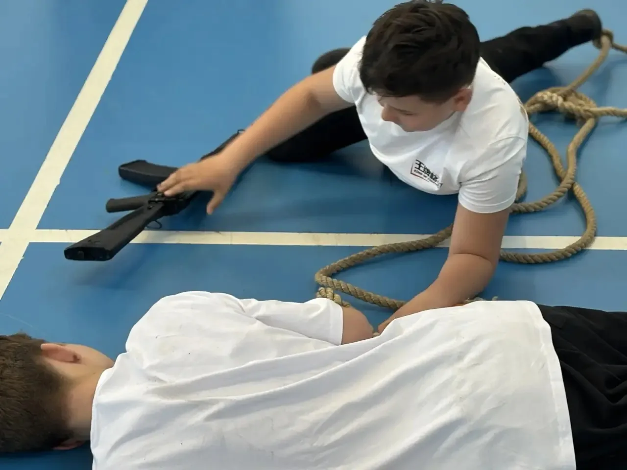 • Оказывали первую медицинскую помощь «пострадавшему бойцу» — настоящие спасатели!