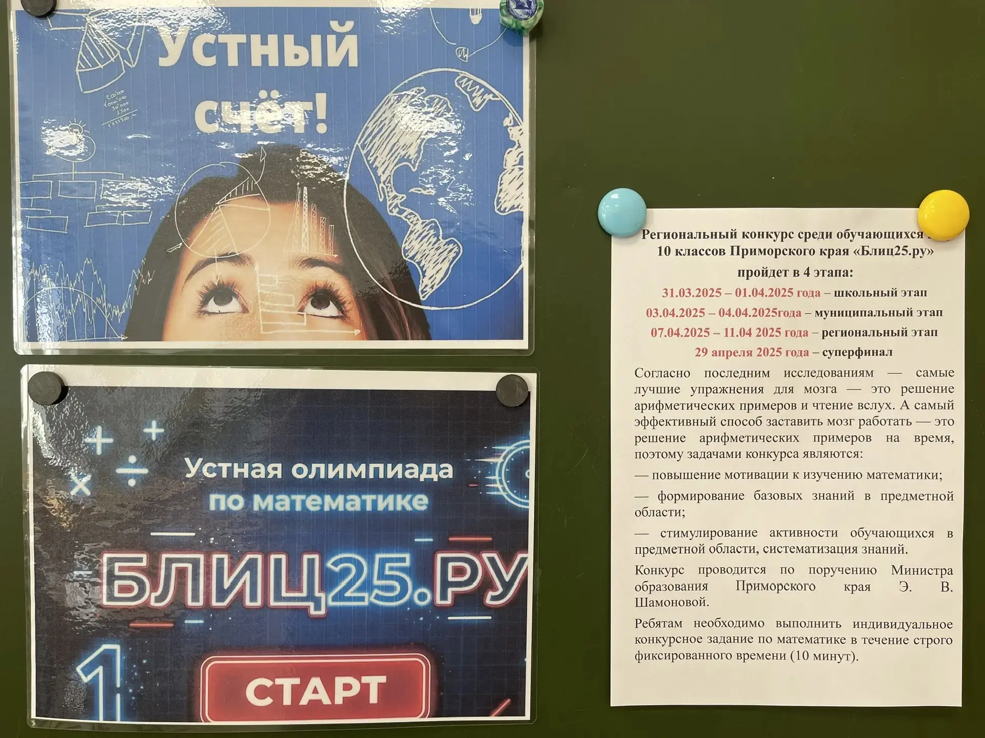 ⭐️⭐️⭐️ПРИГЛАШАЕМ в школьный этап конкурса "Блиц25.ру"! Математическое сражение в Приморье 2 апреля 2026 года! ❗️❗️❗️Цель конкурса - повышение качества знаний по математике и стимулирование активности обучающихся. Конкурс проходит во всех школах 11 муниципальных округов и районов, включая города Артем, Арсеньев и Дальнереченск. Задачи конкурса: Формирование базовых знаний, повышение мотивации и систематизация знаний по математике. Этапы конкурса: Школьный, муниципальный, региональный и суперфинал. Участники решают задания онлайн в строго ограниченное время. Победители школьного этапа переходят в муниципальный этап, а победители муниципального - переходят в региональный, а затем - в суперфинал, где лучшие встретятся в очном поединке. Напомним, инициатором конкурса стал министр образования Приморского края Эльвира Шамонова, которая уделяет большое внимание повышению качества математического образования в крае. ССЫЛКИ НА ТРЕНИРОВОЧНЫЕ задания направлены в чаты классов в МАХ