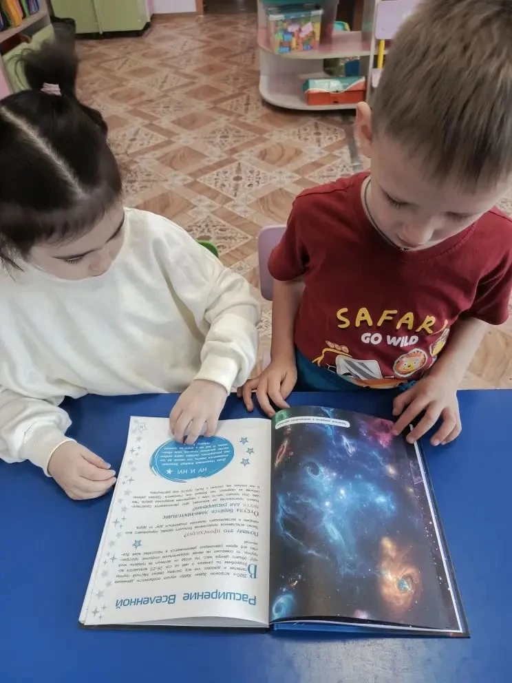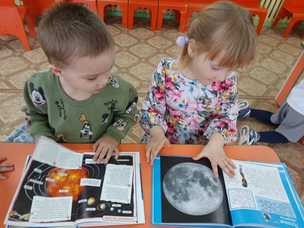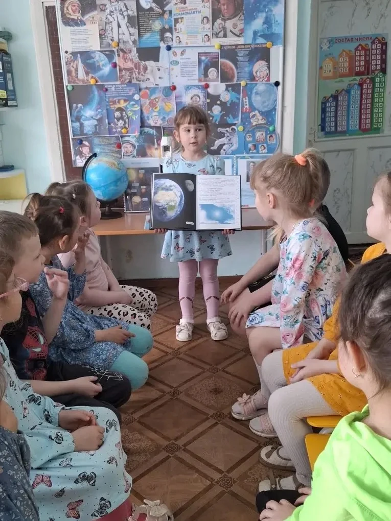 - Чтение книг: Ознакомление с литературой о космосе, космонавтах, а также стихами и сказками на эту тему.