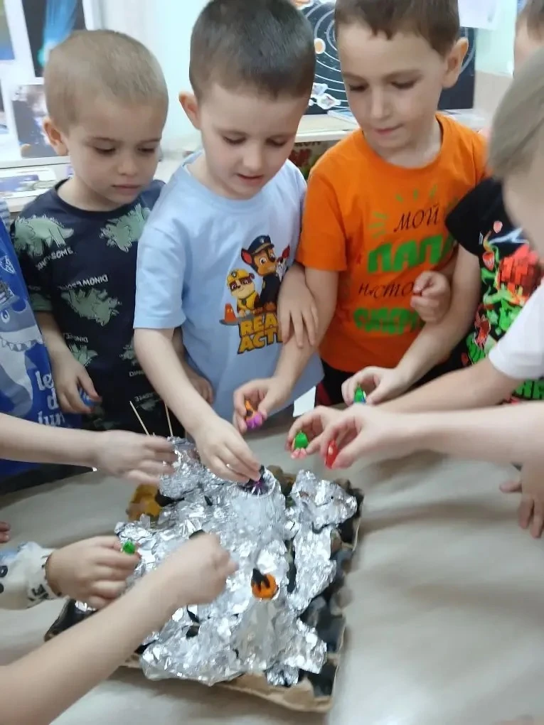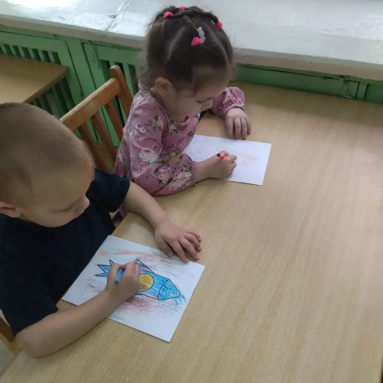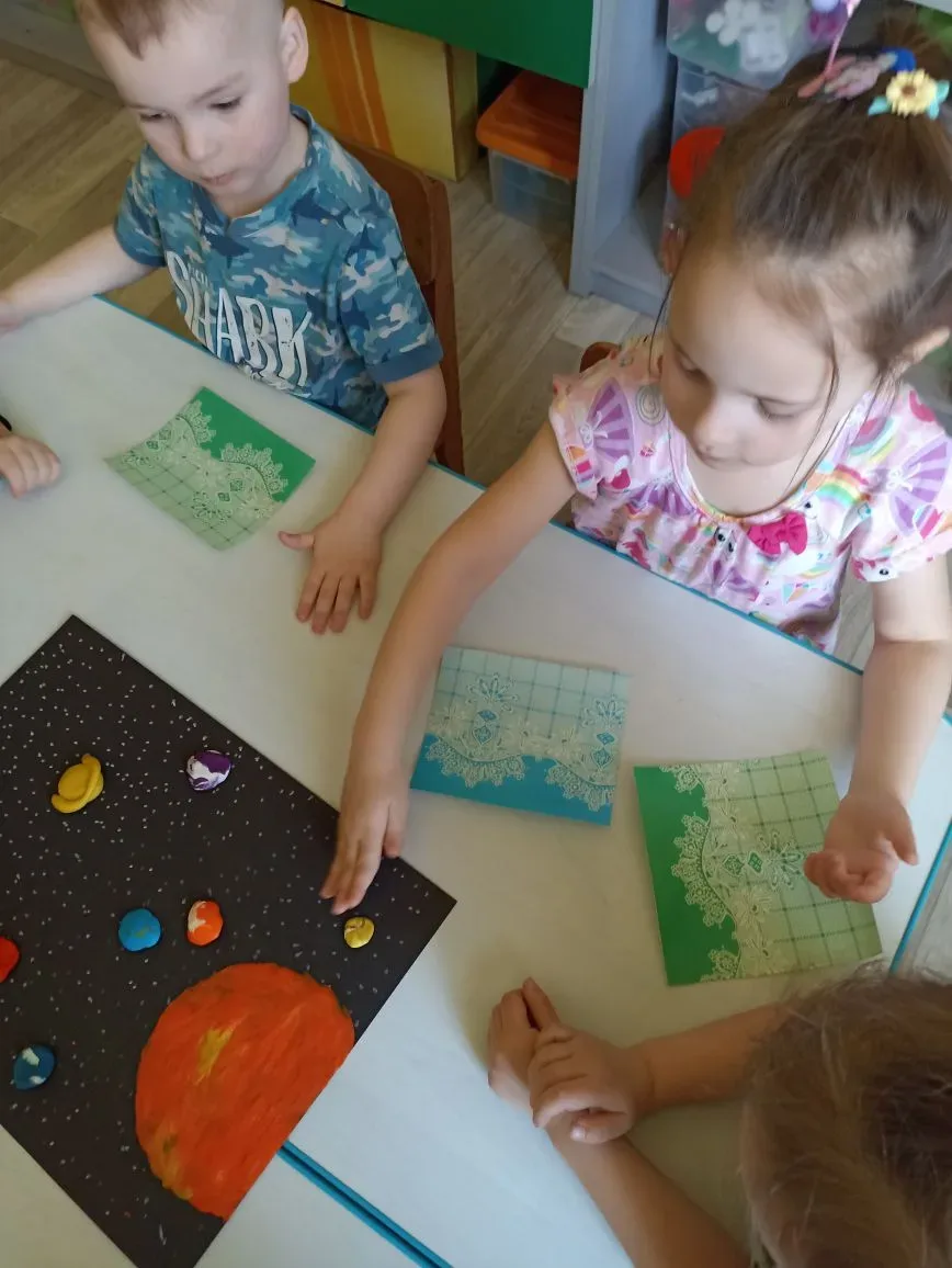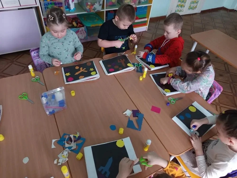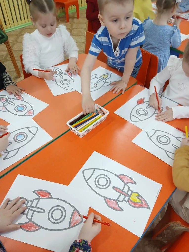 - Творческая деятельность: Ребята рисовали и вырезали ракеты, планеты и звёзды.