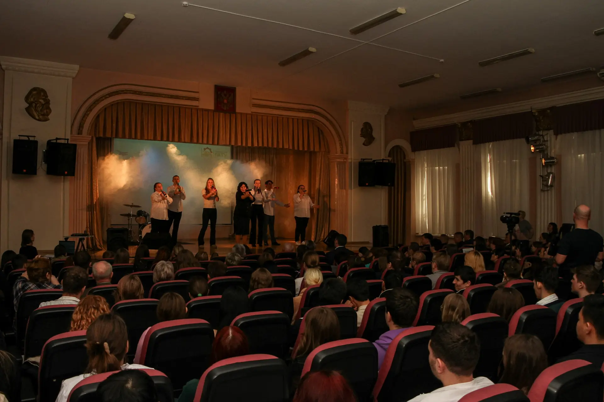 Концертная программа открылась патриотической песней «Россия — это мы» в исполнении вокального ансамбля Университета «Наше время» 🎤. Также своими яркими номерами порадовал зрителей творческий коллектив 101-ой отдельной бригады материально-технического обеспечения восточного военного округа «ПОКОЛЕНИЕ 101» ✨.