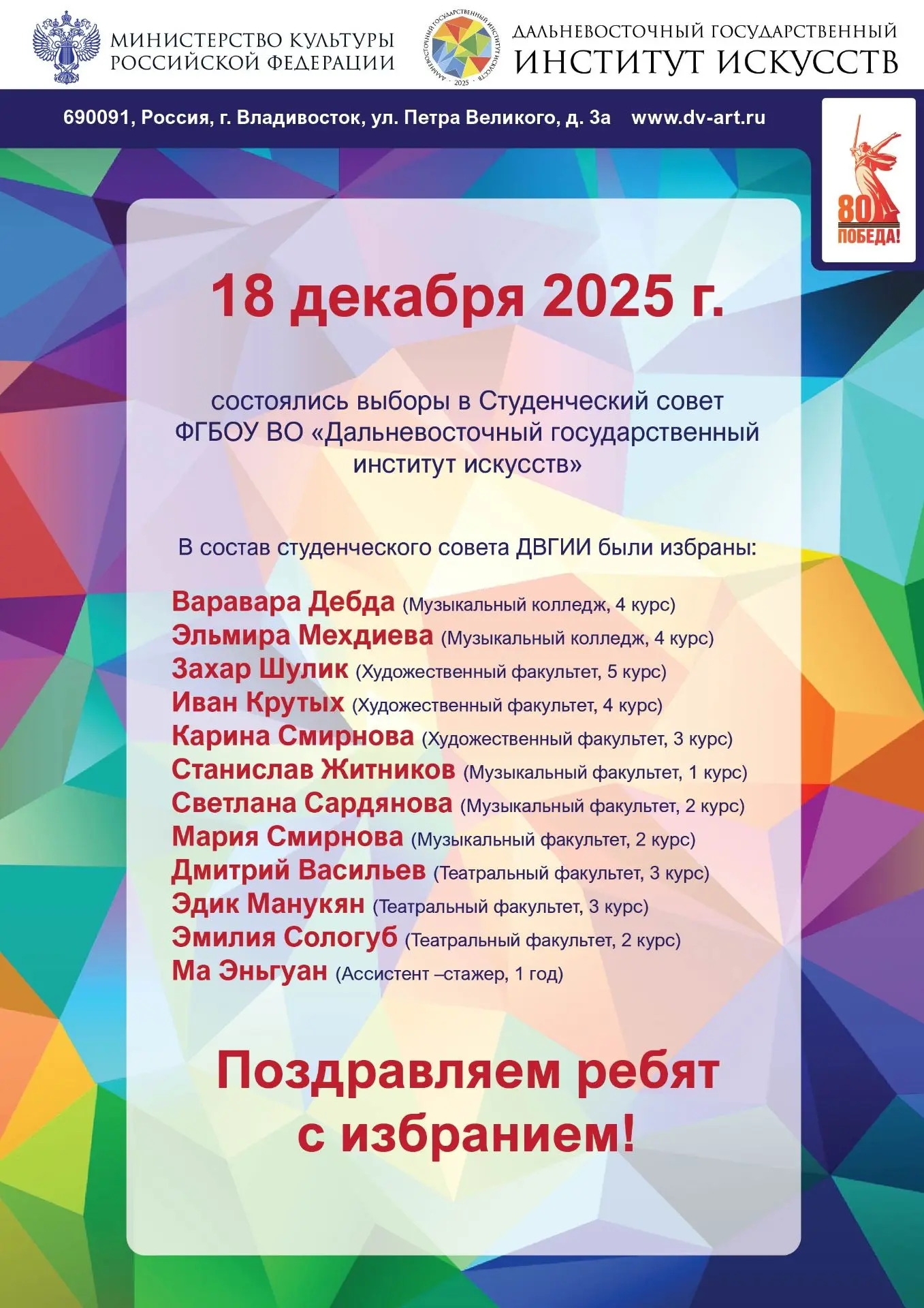 Это прекрасная возможность отметить значимое событие и провести декабрьский вечер в тёплой атмосфере. Ждём всех в Концертном зале института искусств в 18:00.