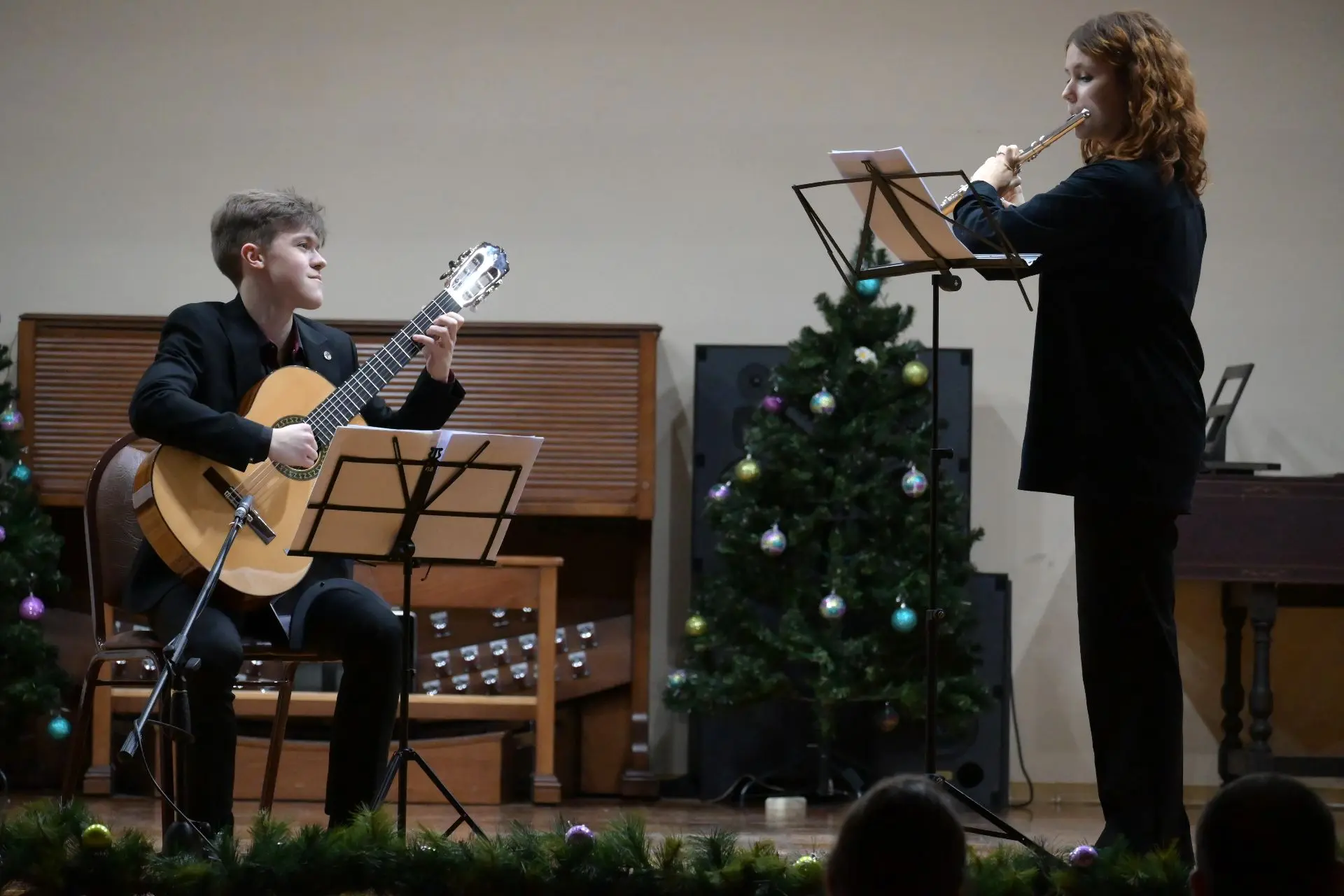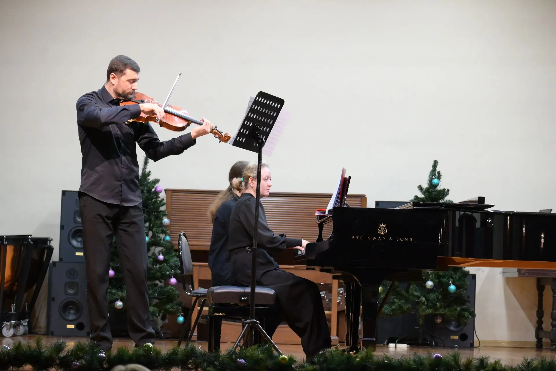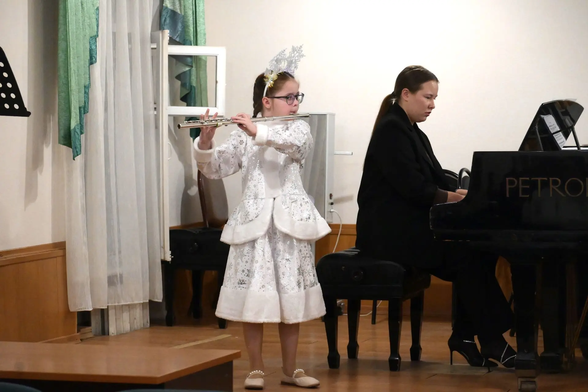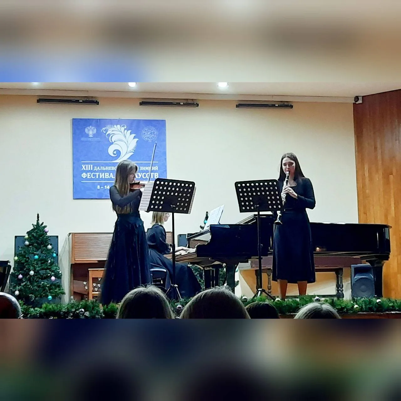В преддверии новогоднего праздника преподаватели и учащиеся ДШИ ДВГИИ подготовили яркие концертные номера и порадовали ими зрителей, родителей, друзей и близких. Свои музыкальные подарки подарили зрителям солисты и ансамбли различных составов, включая совместные номера с педагогами. Под звуки скрипки, рояля, арфы, флейты, гобоя, кларнета, баяна, балалайки, домры, гитары зрители погрузились в мир классической музыки, услышали произведения русских и зарубежных композиторов разных стилей и эпох. Каждый номер был уникален и добавил свою изюминку в праздничную атмосферу.
