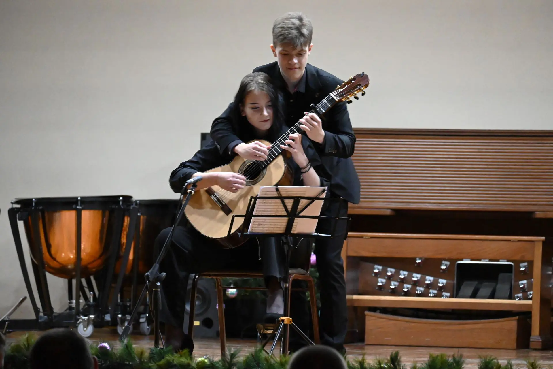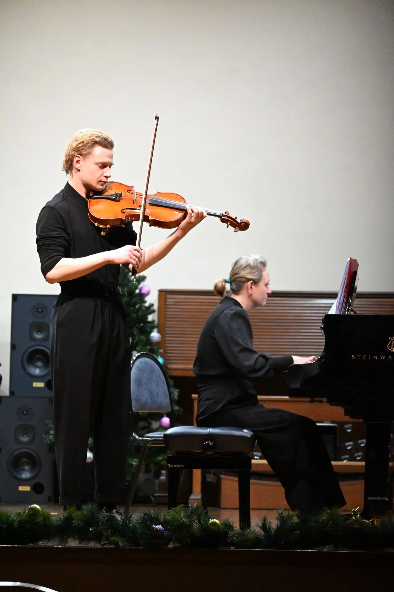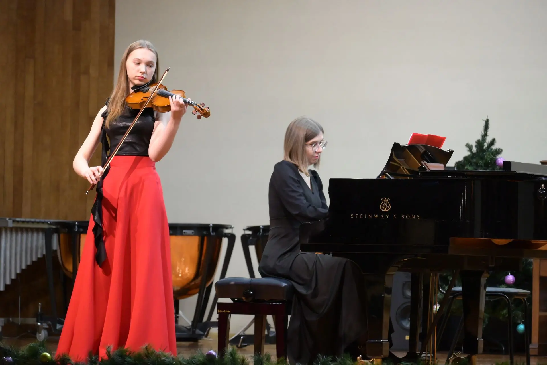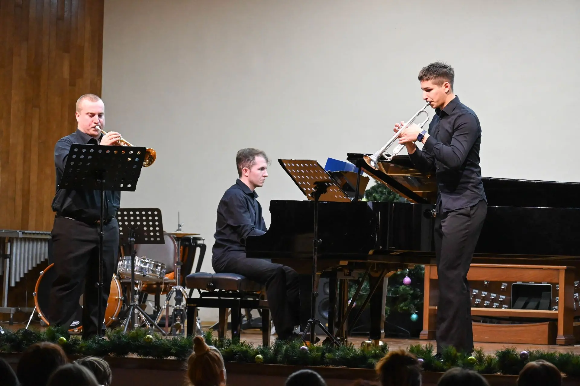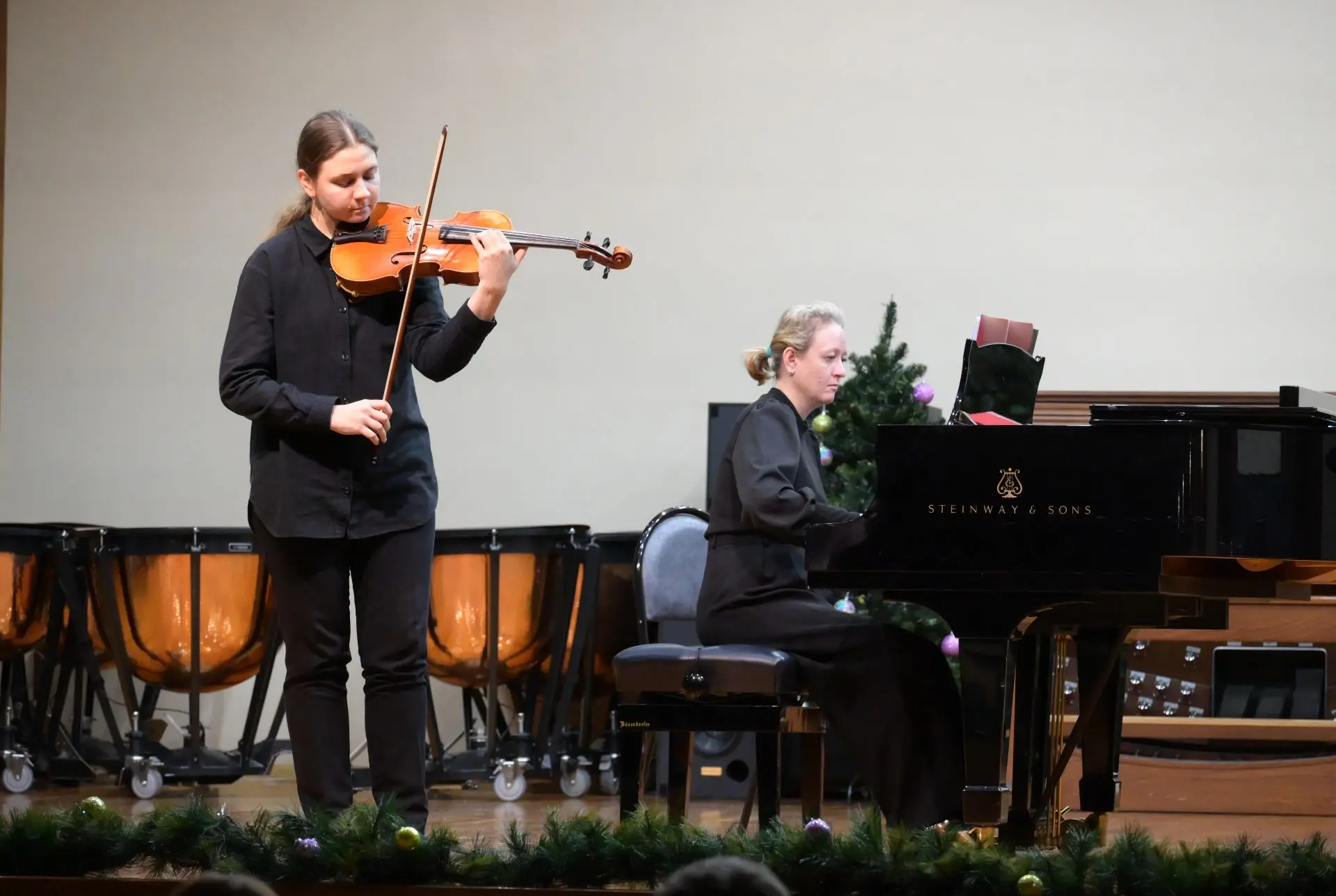 В преддверии новогоднего праздника преподаватели и учащиеся ДШИ ДВГИИ подготовили яркие концертные номера и порадовали ими зрителей, родителей, друзей и близких. Свои музыкальные подарки подарили зрителям солисты и ансамбли различных составов, включая совместные номера с педагогами. Под звуки скрипки, рояля, арфы, флейты, гобоя, кларнета, баяна, балалайки, домры, гитары зрители погрузились в мир классической музыки, услышали произведения русских и зарубежных композиторов разных стилей и эпох. Каждый номер был уникален и добавил свою изюминку в праздничную атмосферу.