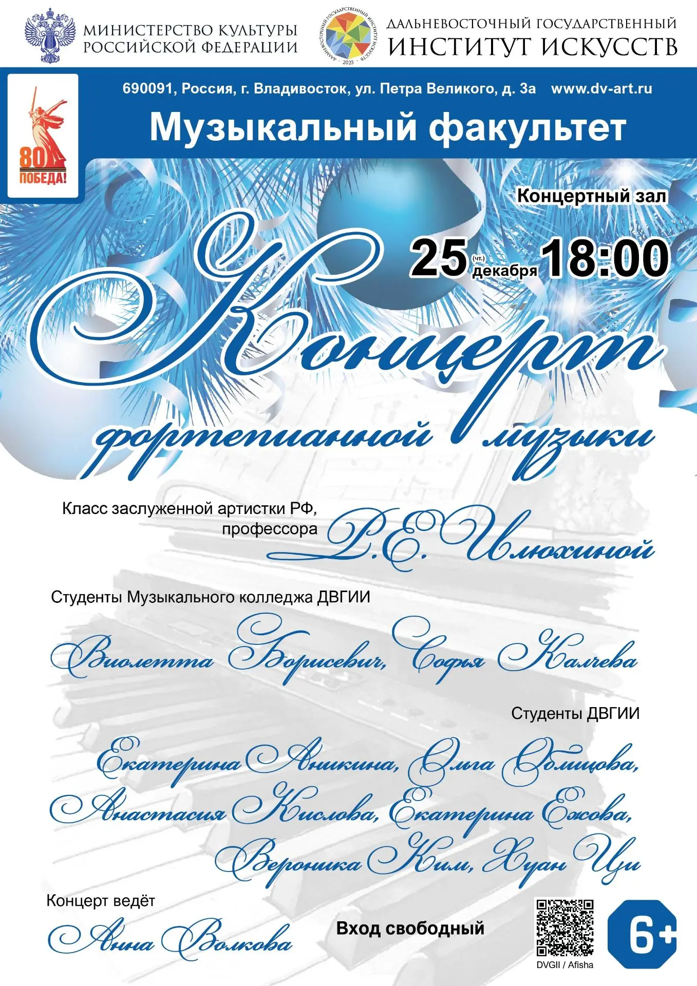 25 декабря в Концертном зале Дальневосточного государственного института искусств состоялся концерт фортепианной музыки.