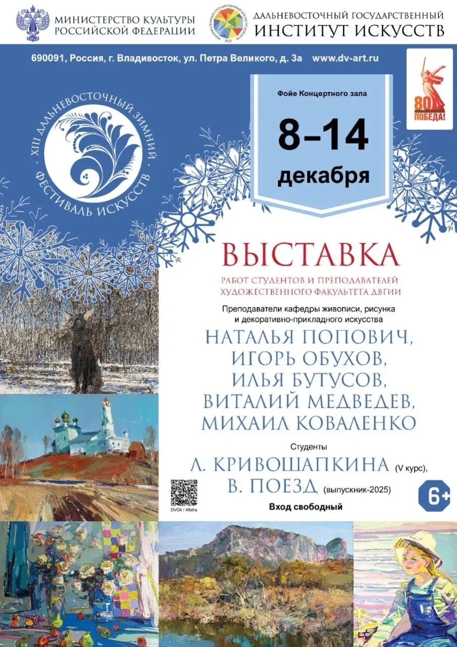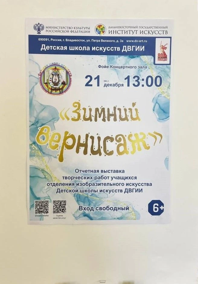 21 декабря в Фойе Концертного зала Дальневосточного государственного института искусств состоялась зимняя отчетная выставка работ учащихся художественного отделения ДШИ ДВГИИ «Зимний вернисаж».