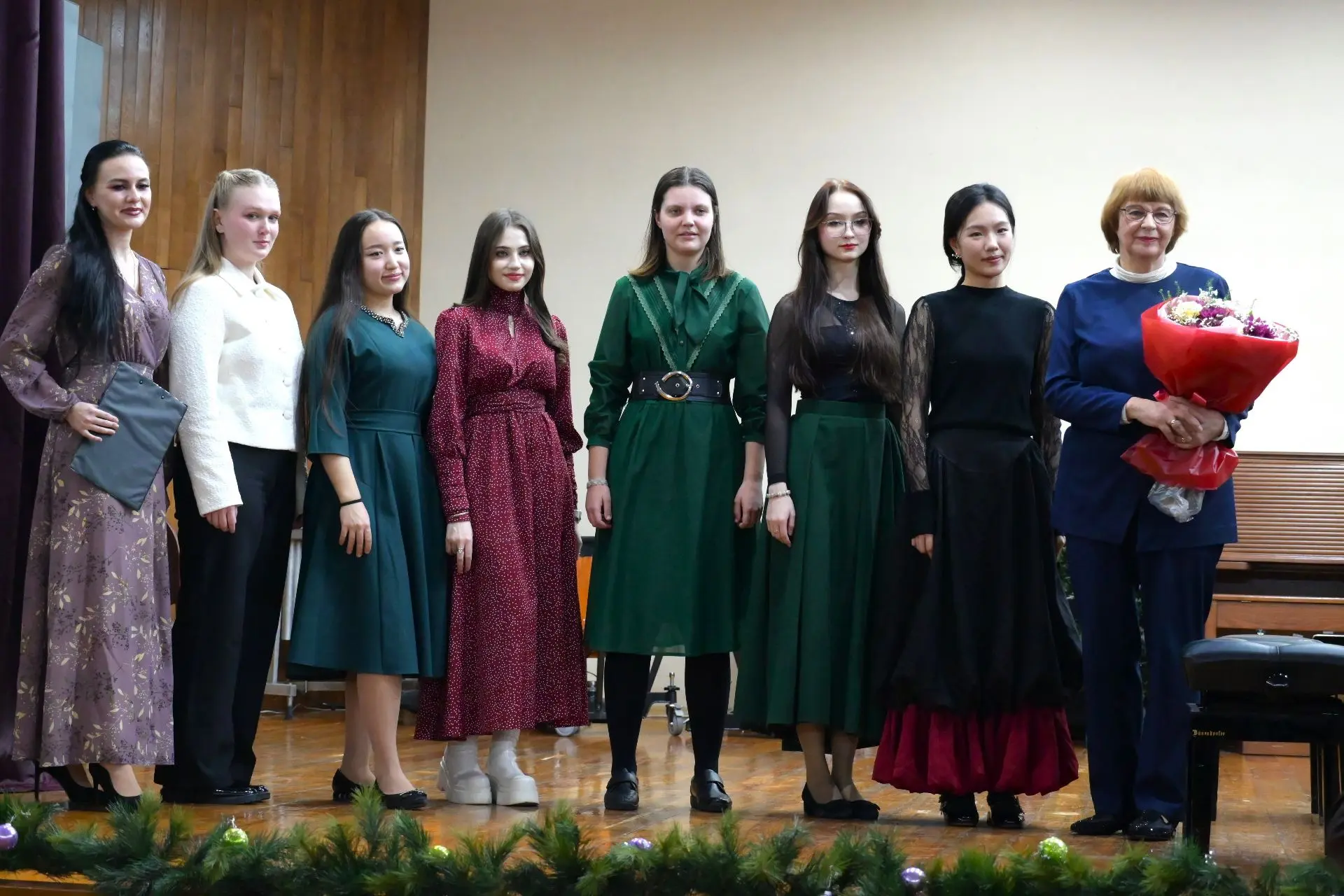 В концерте принимали участие студенты Музыкального колледжа и Института ДВГИИ класса заслуженной артистки Российской Федерации, профессора