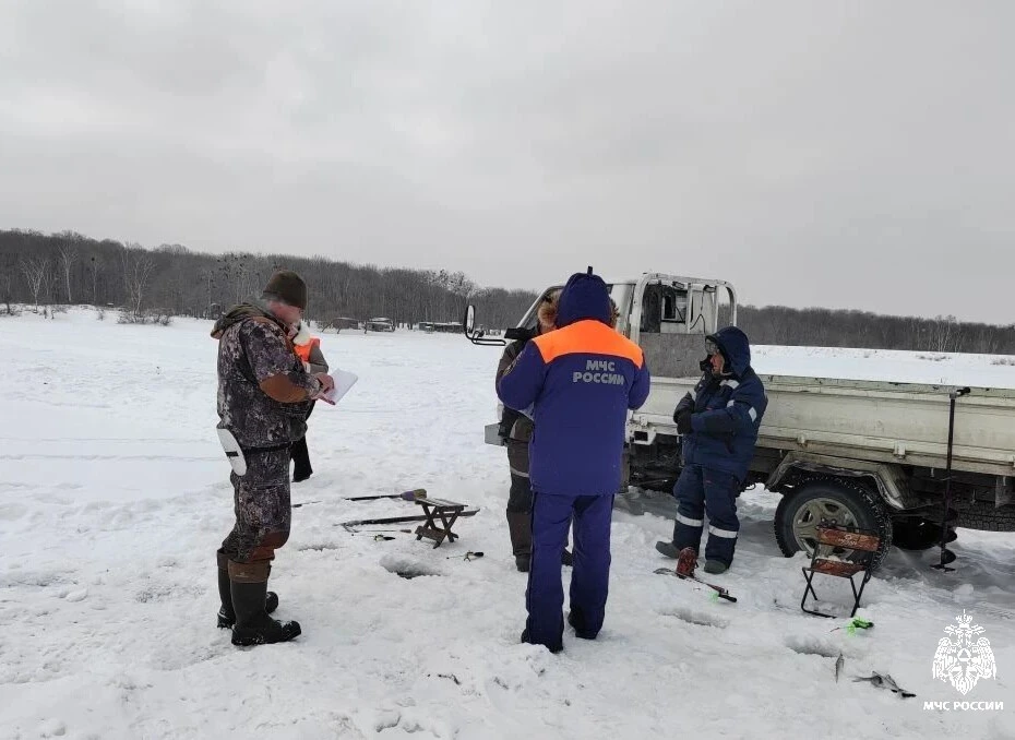 Рыбакам-любителям напомнили главное: выезд на лёд на автомобиле запрещён. Также сообщили телефоны экстренных служб и раздали памятки с алгоритмом действий, если человек провалился под лёд.