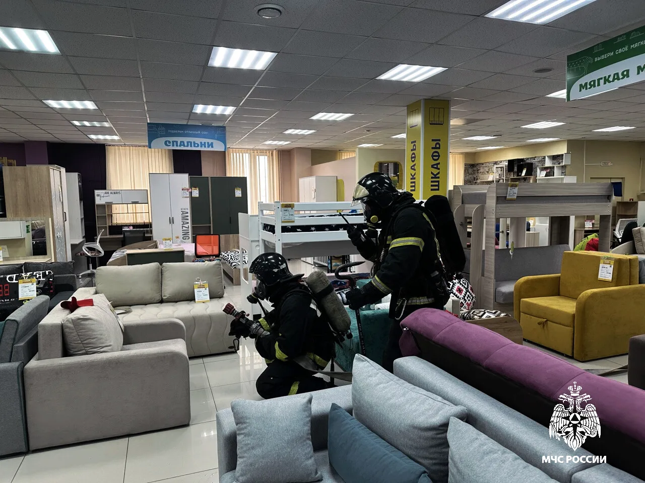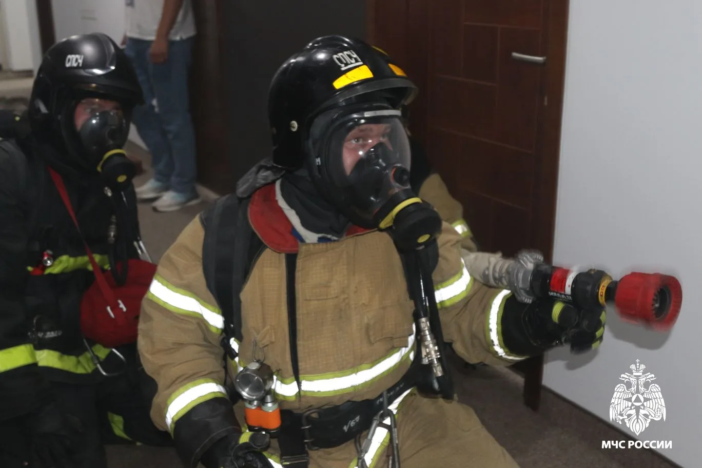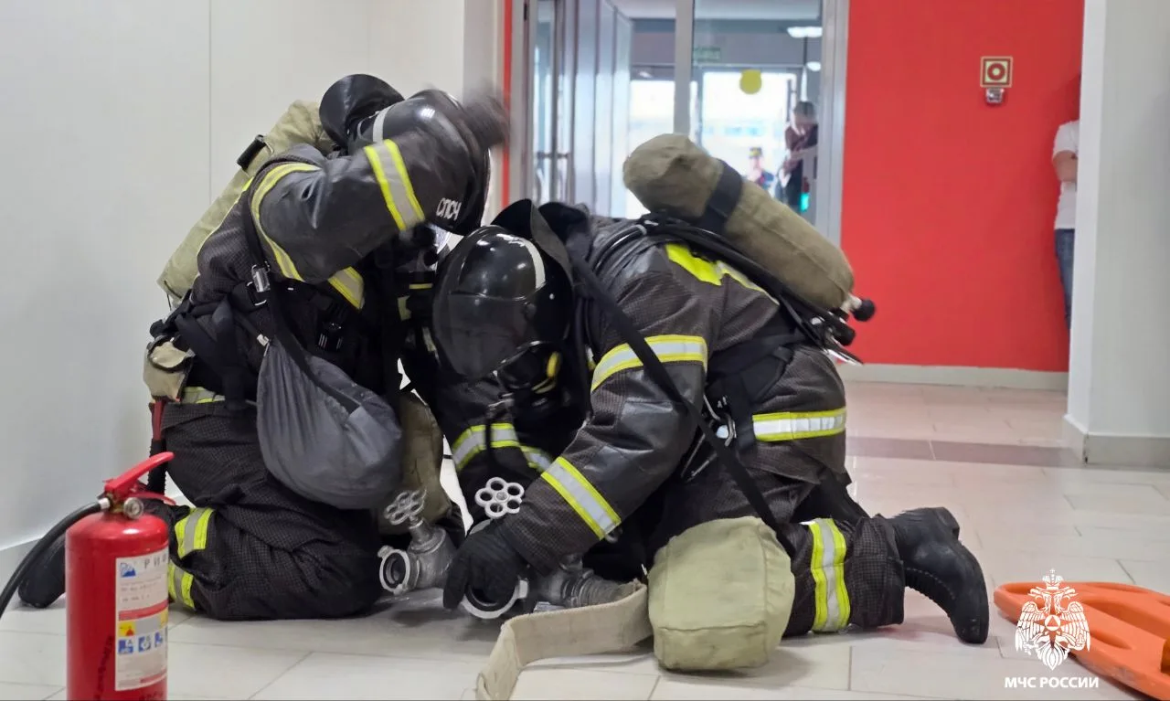 Огнеборцы МЧС России одним звеном ГДЗС провели поиск, вывели «пострадавших» и проверили помещения, после чего ликвидировали условный пожар на площади 1 квадратный метр.