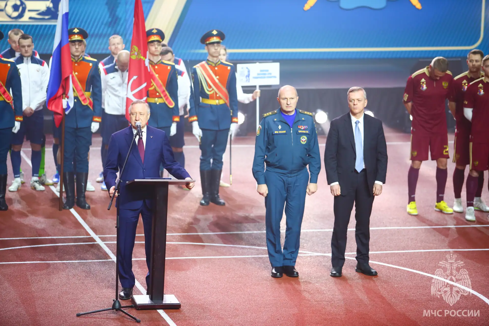 Глава МЧС России Александр Куренков в Санкт-Петербурге открыл международный турнир по мини-футболу в память о погибших пожарных