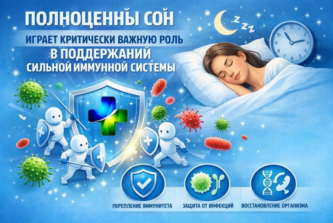 😴🛌Таким образом, полноценный сон (около 7–9 часов в сутки) является одним из важнейших факторов сохранения крепкого иммунитета и общей сопротивляемости организма заболеваниям