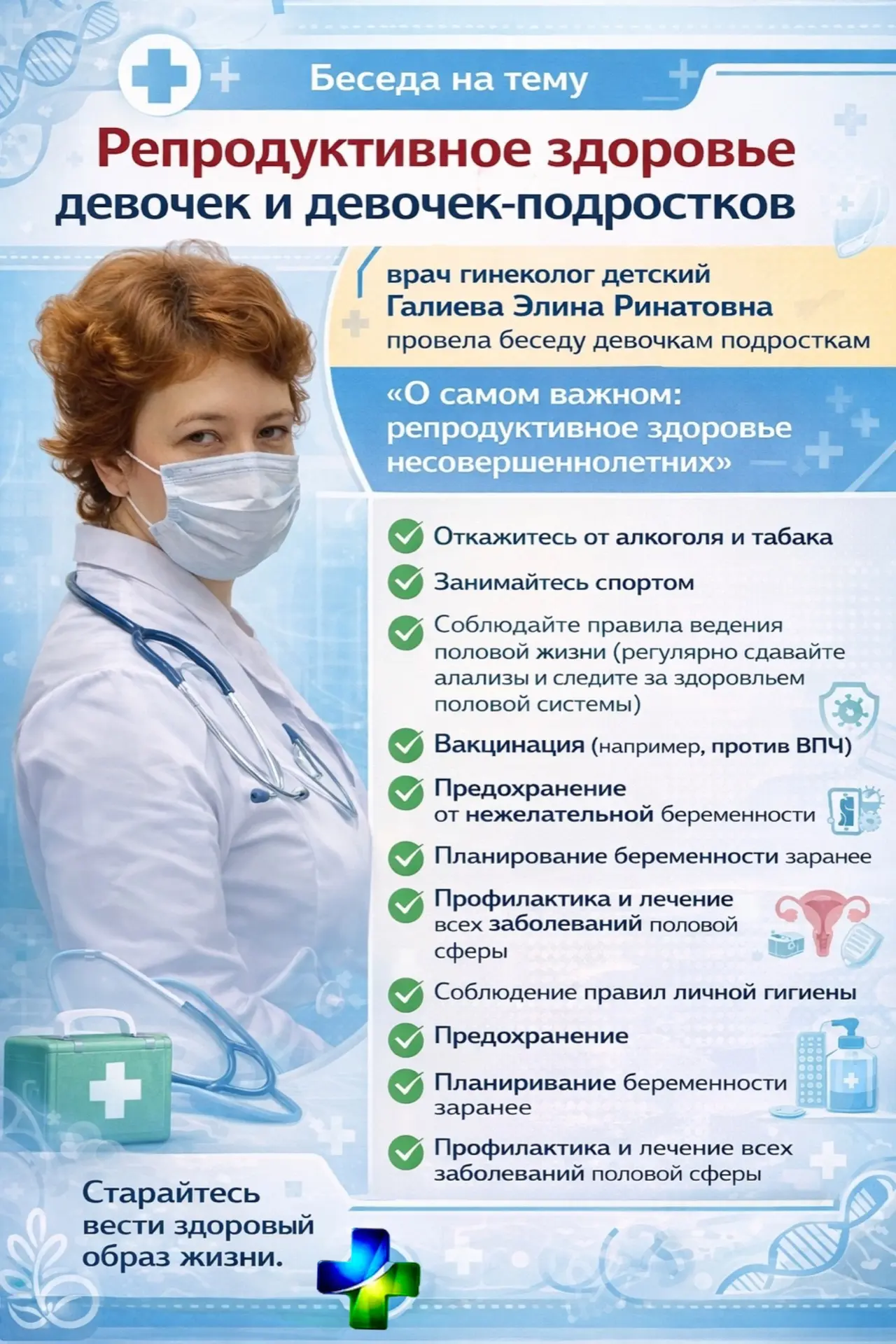 ✅ А в целом, забота о своем здоровье, в том числе его составляющей репродуктивном здоровье, должна стать нормой и культурой поведения каждого человека и всего общества