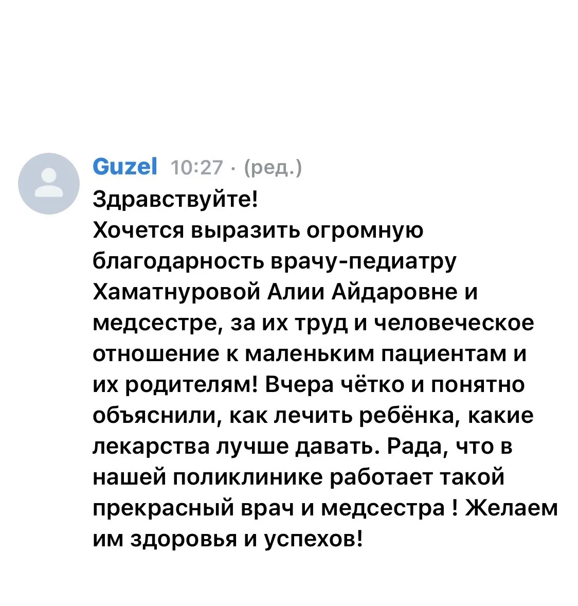 🌺Большое вам спасибо за такой теплый отзыв и такие добрые слова в адрес нашей ЦРБ и сотрудников больницы!