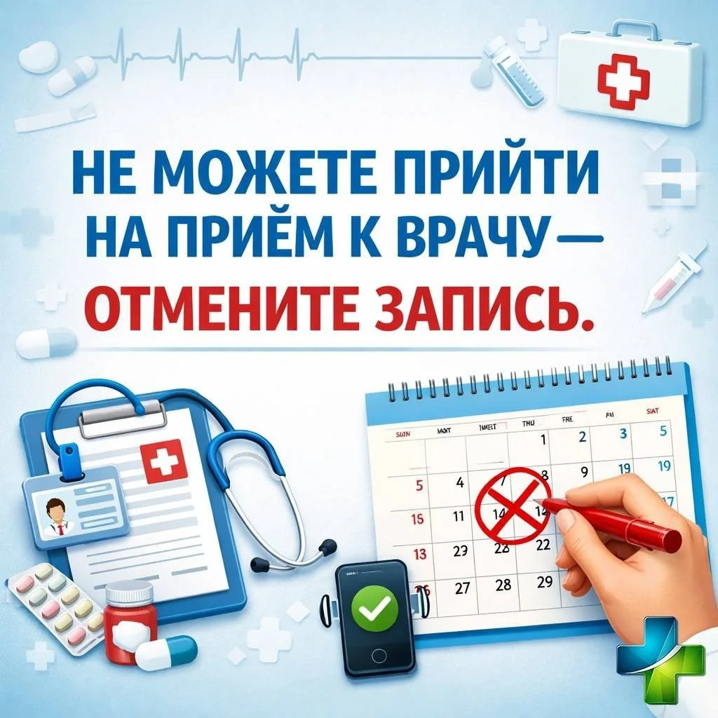 Если по каким-то причинам вы не можете прийти на запланированный прием к врачу, пожалуйста, отмените свою запись заранее. Это позволит врачам эффективнее планировать рабочее время и помочь другим пациентам получить необходимую медицинскую помощь.