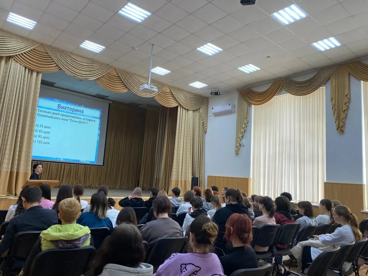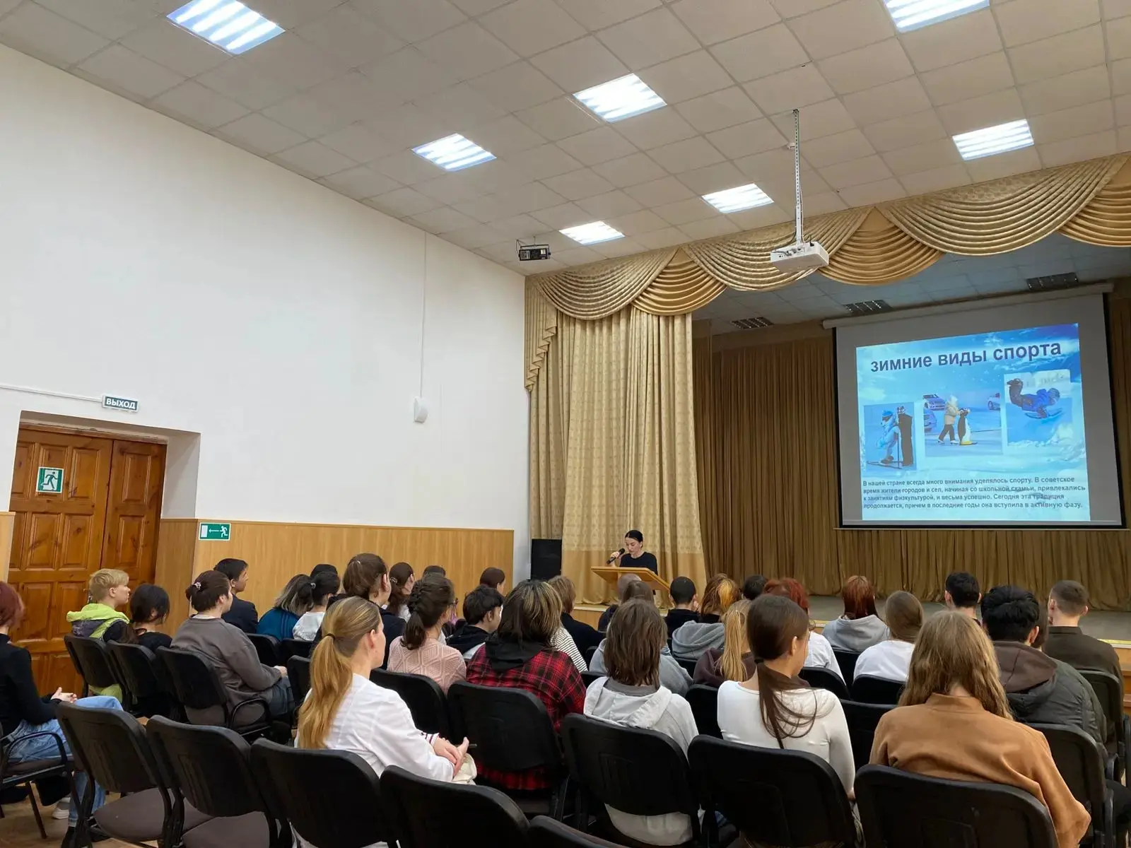 В рамках плана воспитательной работы 6 февраля 2026 года в актовом зале колледжа ( ГБПОУ АСХК) было проведено внеурочное мероприятие « День зимних видов спорта в России», посвящённое здоровому образу жизни и зимним спортивным дисциплинам, чтобы вдохновить студентов на активность и познакомить их с олимпийским наследием России.