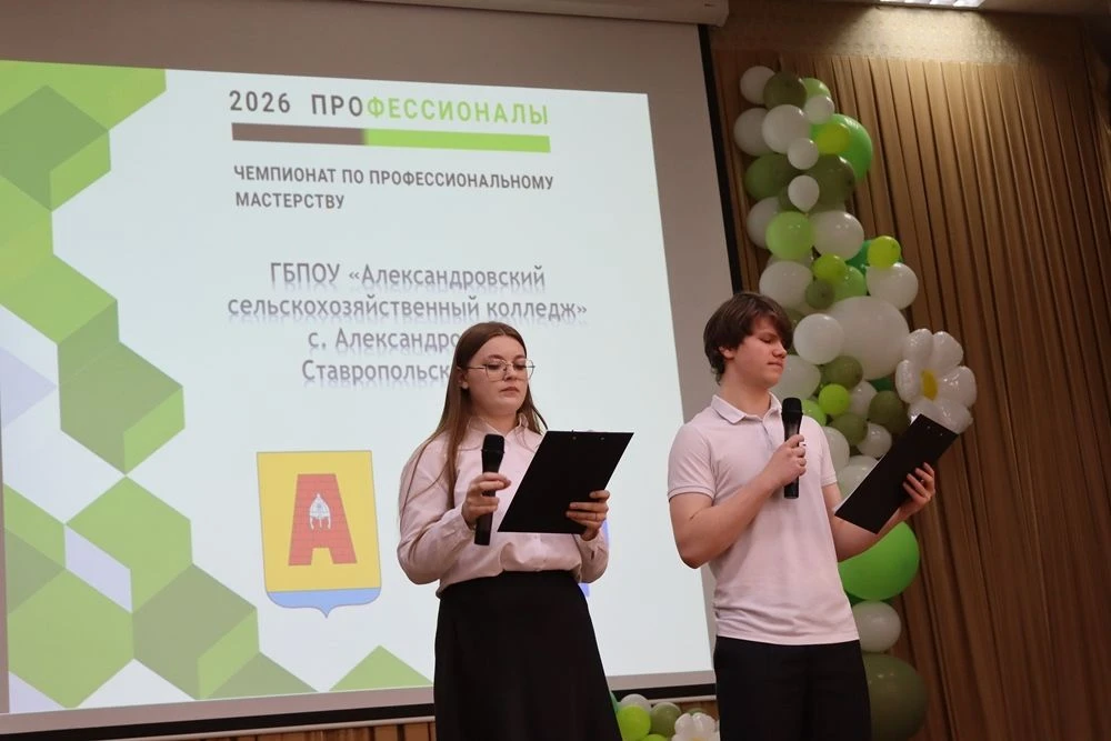 16 февраля 2026 года, на базе ГБПОУ «Александровский сельскохозяйственный колледж», состоялось открытие регионального этапа Чемпионата по профессиональному мастерству «Профессионалы» в Ставропольском крае – 2026. Конкурсанты - обучающиеся образовательных организаций по программам СПО соревнуются три дня по пяти компетенциям: «Агрономия», «Ветеринария», «Инженерия Космических Систем», «Сельскохозяйственные биотехнологии» и «Эксплуатация сельскохозяйственных машин».