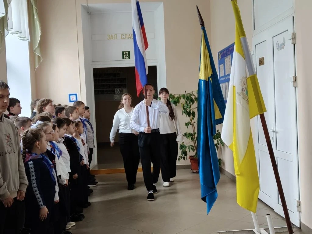 💫С традиционной линейки, посвящённой исполнению Гимна Российской Федерации, началась новая учебная неделя в Первой Александровской школе.