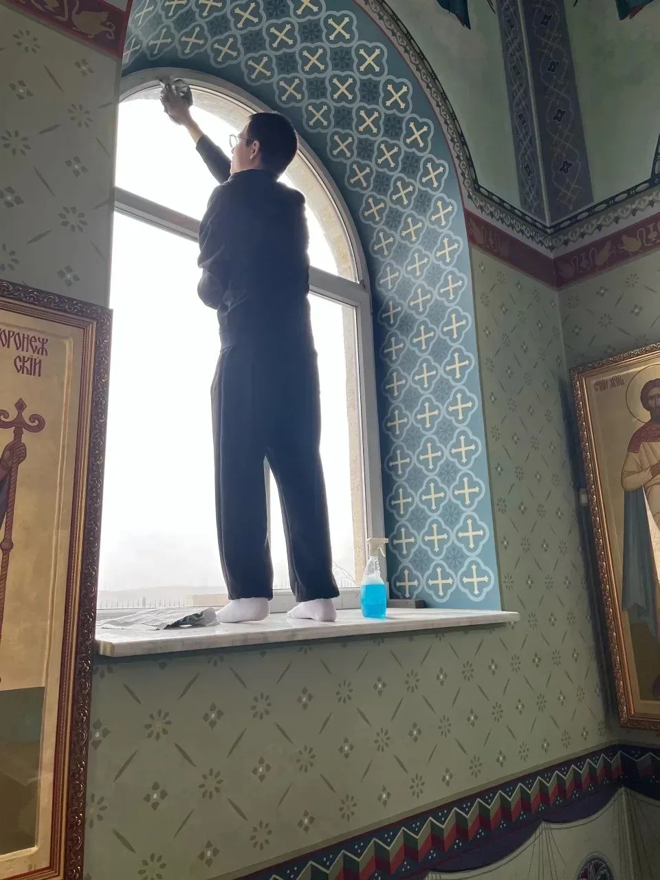 Весна — время обновления, и наши выпусники вместе с классным руководителем Момот Т. Д. уже активно включились в подготовку храма к новому сезону. Ребята дружно взялись за дело и с большой ответственностью вымыли окна, чтобы в храме стало ещё светлее и уютнее.