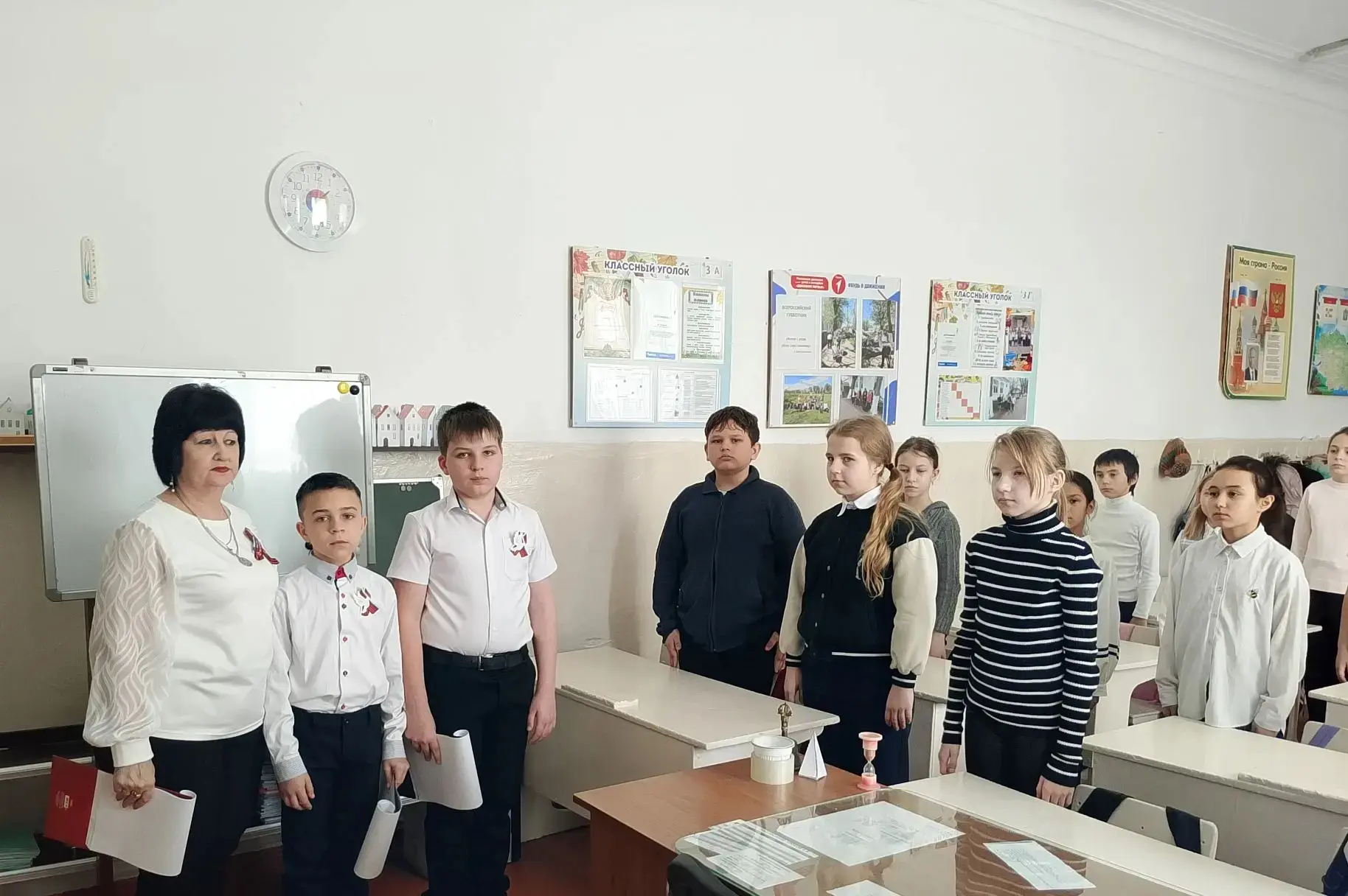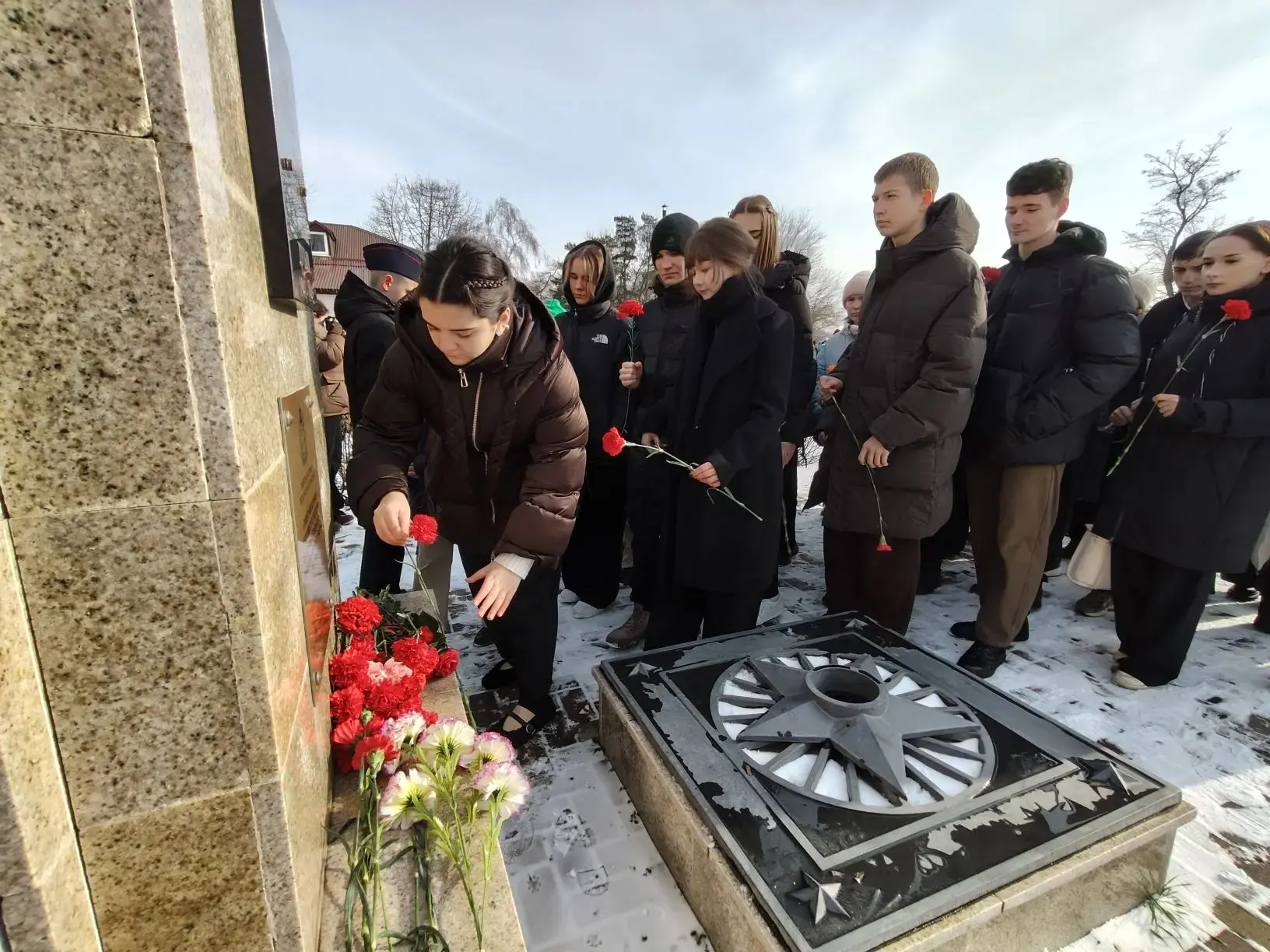 🌟Учителя и ученики почтили память павших героев минутой молчания и возложили цветы к школьному памятнику.