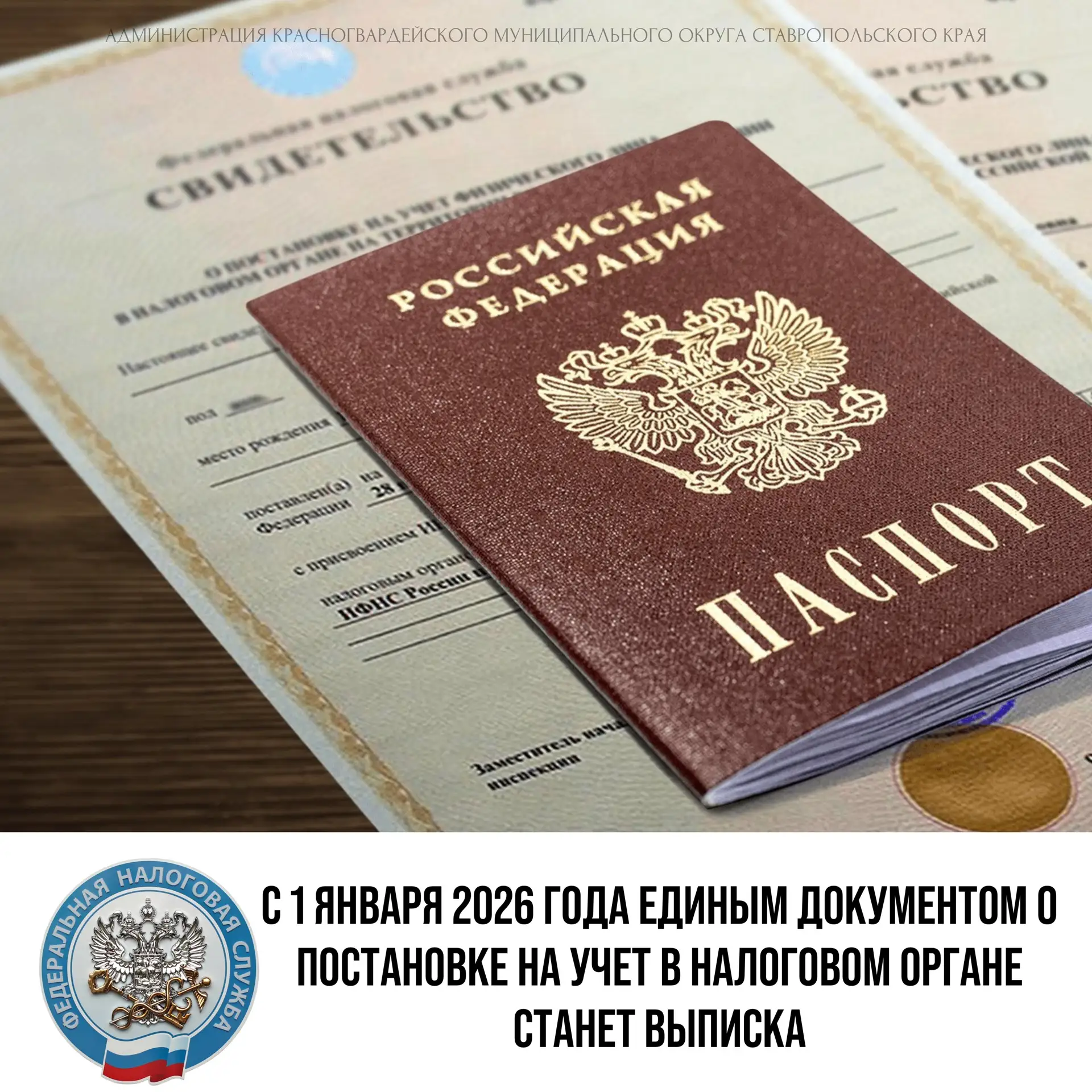 С 1 января 2026 года единственным документом, подтверждающим постановку физического лица на налоговый учет, станет выписка из Единого государственного реестра налогоплательщиков (ЕГРН).