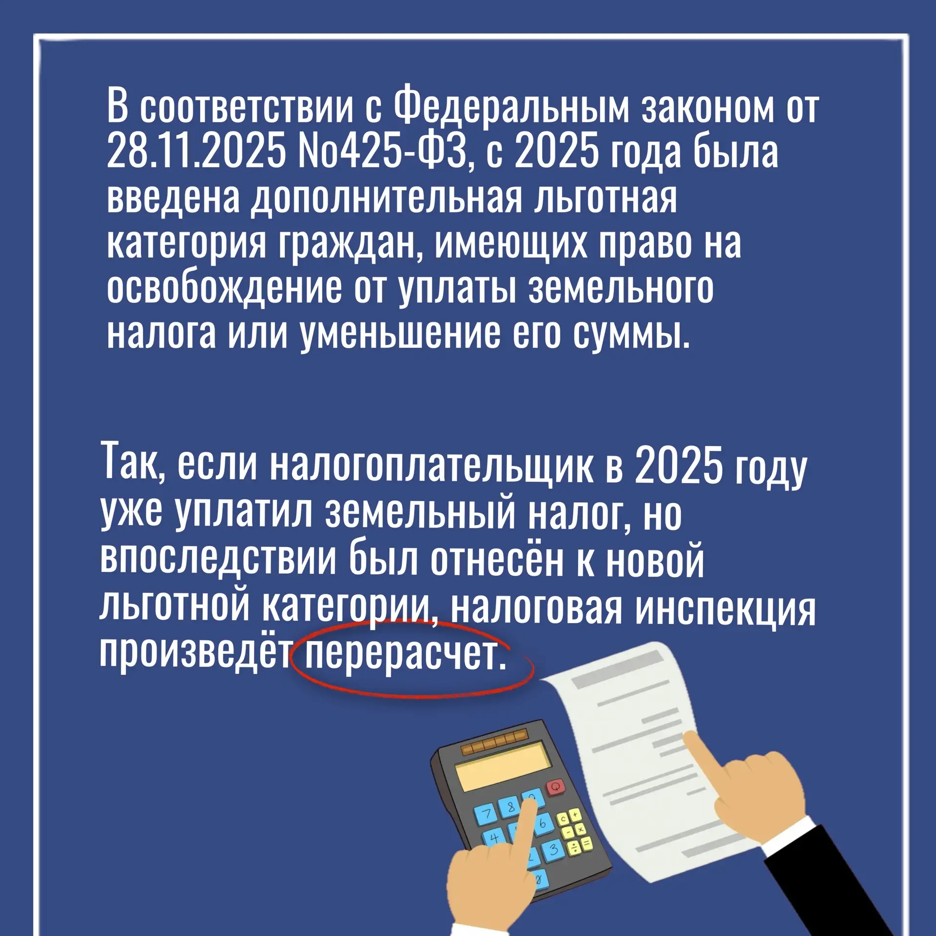 Налоговая служба информирует о возможном автоматическом перерасчете земельного налога.