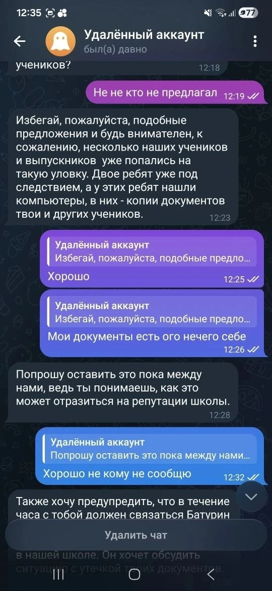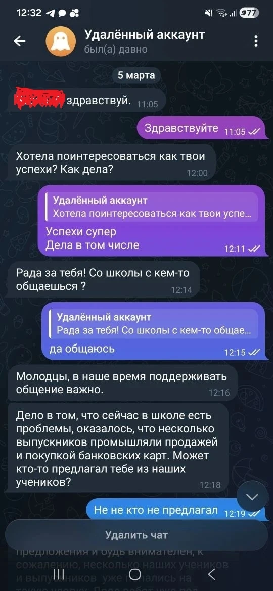 Ребята, выпускники школы! В последнее время выявлено несколько случаев создания фейковых аккаунтов от имени педагогов школы в мессенджере Телеграмм.