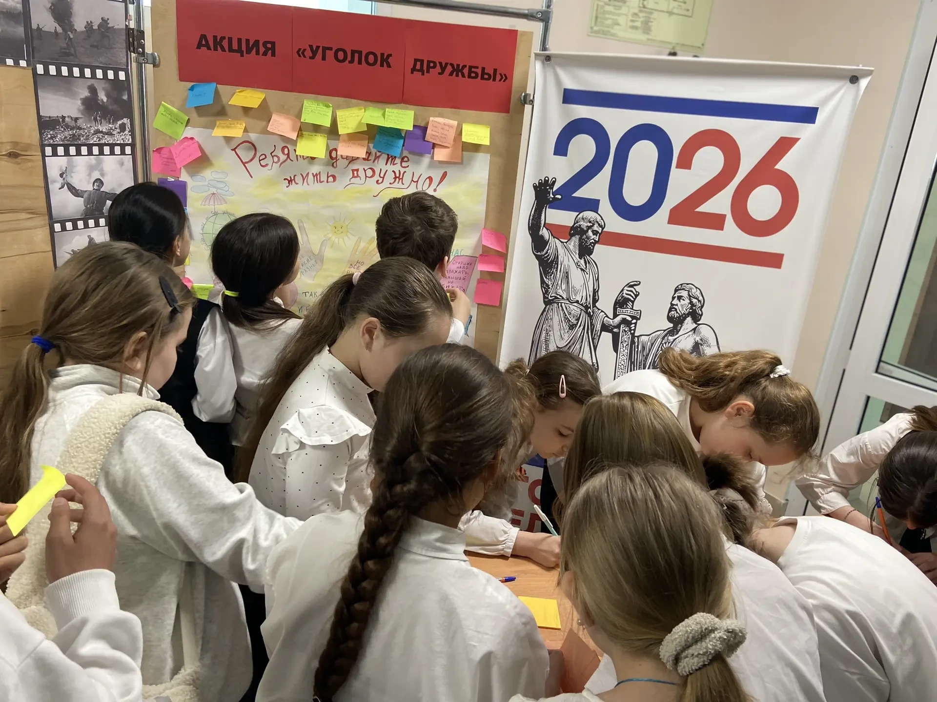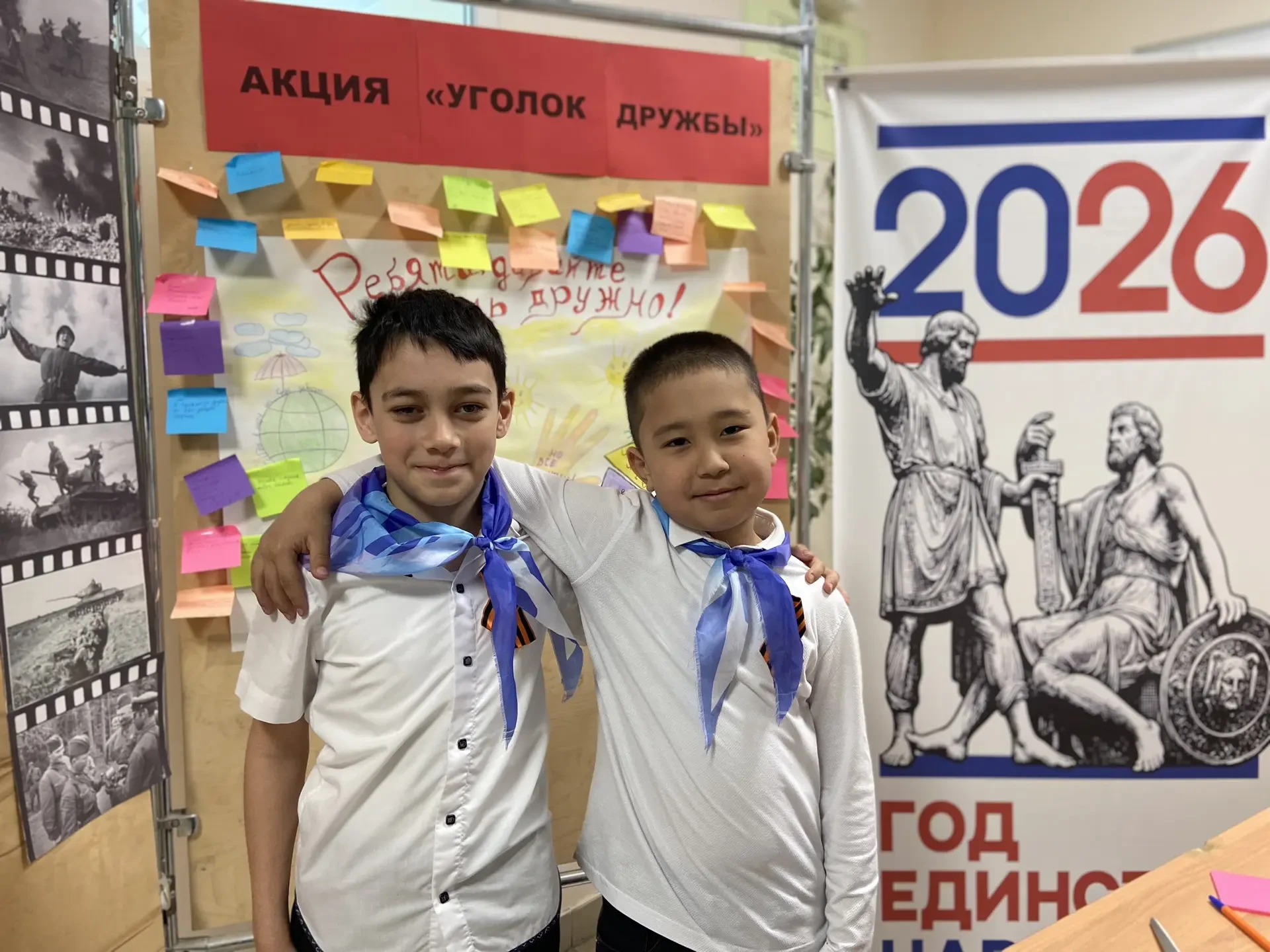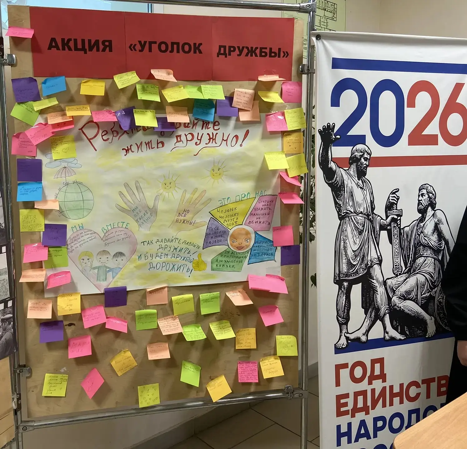 В этот день наши ребята стали участниками добрых и ярких акций, главная из которых — «Уголок дружбы». Вместе мы создавали атмосферу тепла, поддержки и взаимопонимания.