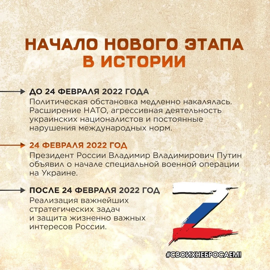 В этот день, 24 февраля 2022 года, Россия шагнула в историю, решившись на решительный шаг ради защиты своих интересов, безопасности соотечественников и будущего мира. Специальная военная операция стала ответом на годы нарастающего давления, провокаций и прямых угроз со стороны коллективного Запада.