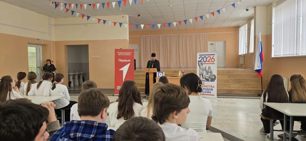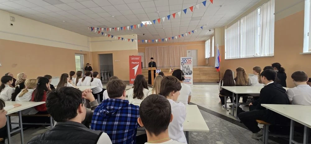 Сегодня в нашей школе прошел тематический час, посвященный вопросам личной безопасности и внутренней культуры подростков. Перед учащимися выступил настоятель храма преподобного Сергия Радонежского иеромонах Вениамин.