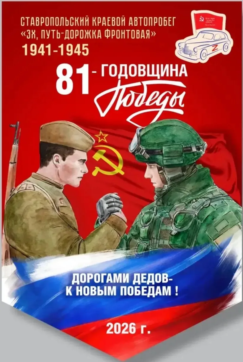 🎗️В Ставропольском крае шестнадцатый год подряд в рамках Всероссийской акции «Знамя Победы» дан старт традиционному патриотическому автопробегу «Эх, путь-дорожка фронтовая!». Мероприятие приурочено к 81-й годовщине Победы в Великой Отечественной войне и проводится при поддержке Губернатора края Владимира Владимирова.