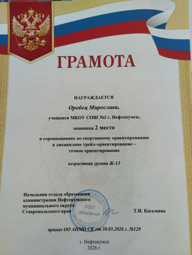 Поздравляем учащуюся 6 «Б» класса Оробец Мирославу с заслуженным вторым местом в соревнованиях по спортивному ориентированию!