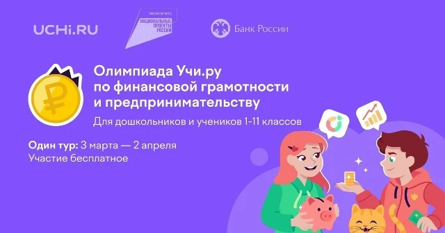 👨🏫 3 марта на платформе Учи.ру стартует бесплатная олимпиада по финансовой грамотности и предпринимательству! (clck.ru/33jJt2?)