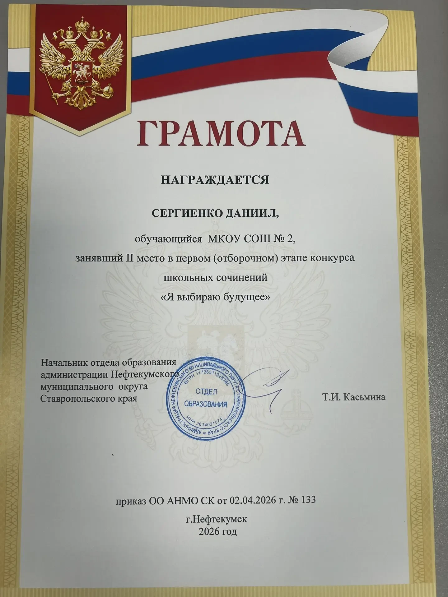 С гордостью сообщаем, что учащиеся 5 «Б» класса нашей школы показали блестящие результаты на первом этапе краевого конкурса школьных сочинений «Я выбираю будущее»!