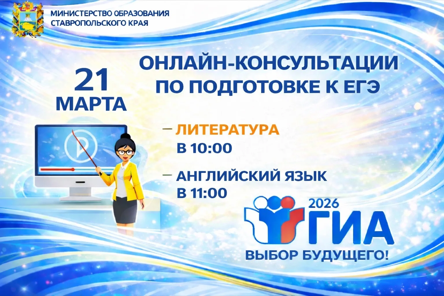 21 марта пройдут онлайн-консультации, посвященные подготовке к единому государственному экзамену.