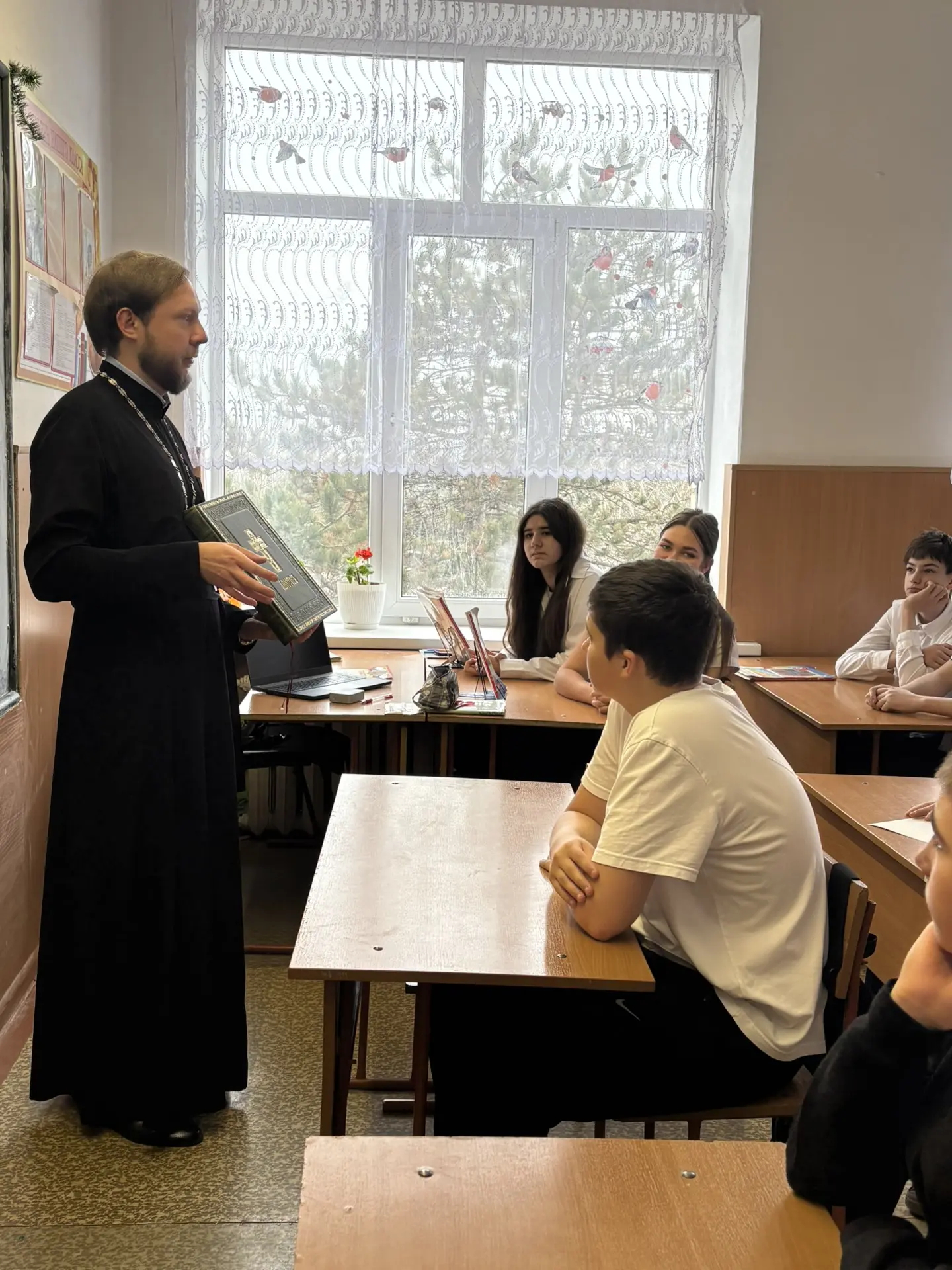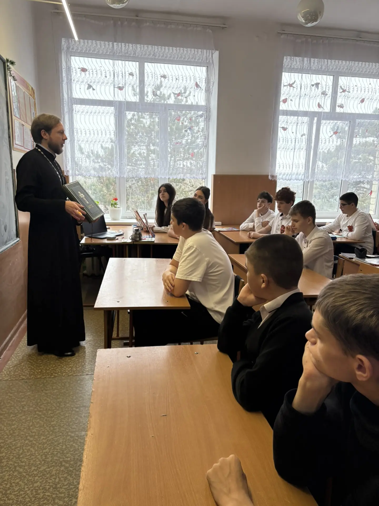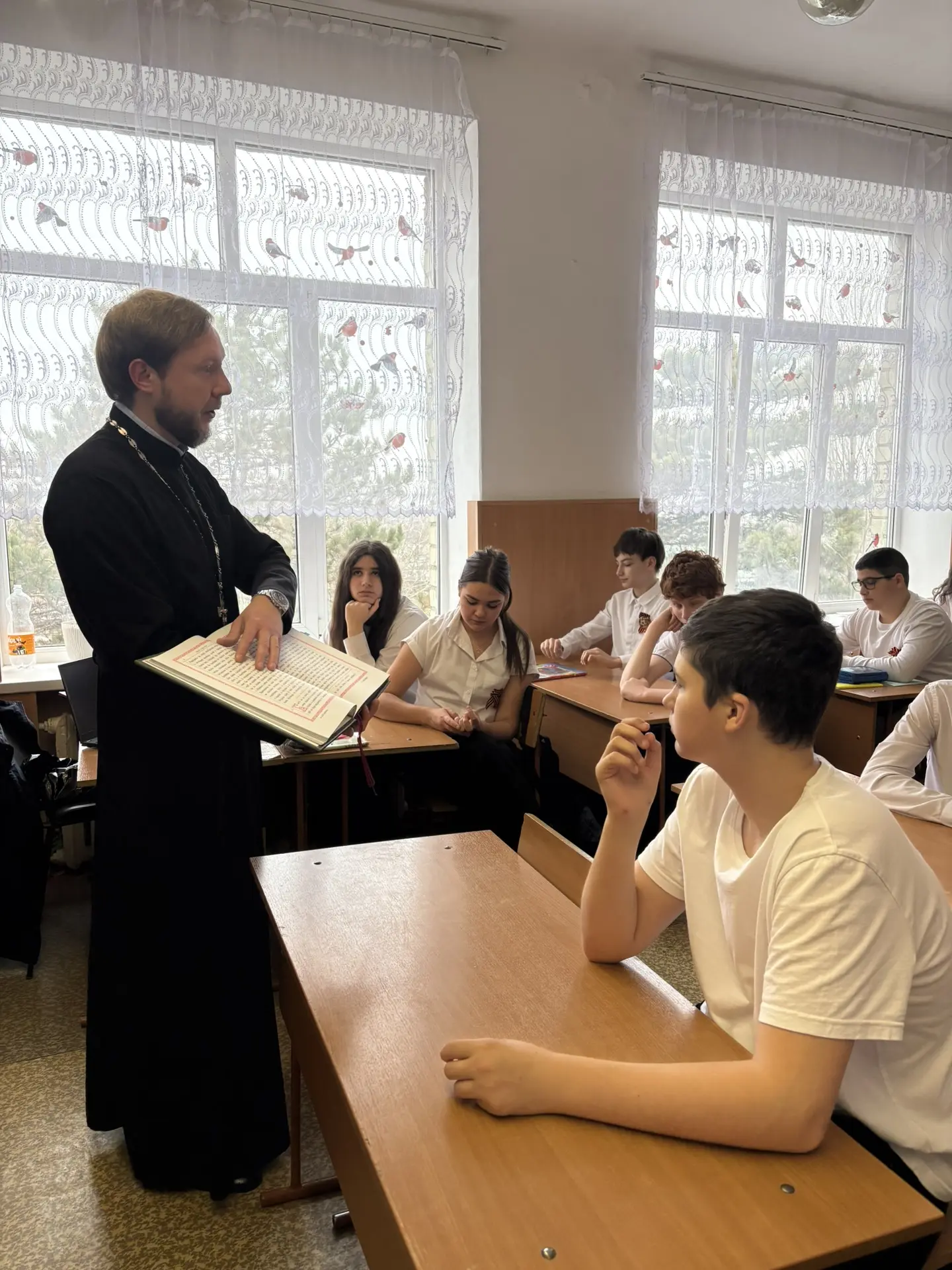 Гостем встречи стал отец Андрей. Он провёл для ребят интересную и познавательную беседу и напомнил о том, что развитие нашей страны всегда тесно связано с бережным отношением к традициям и духовному наследию 📜