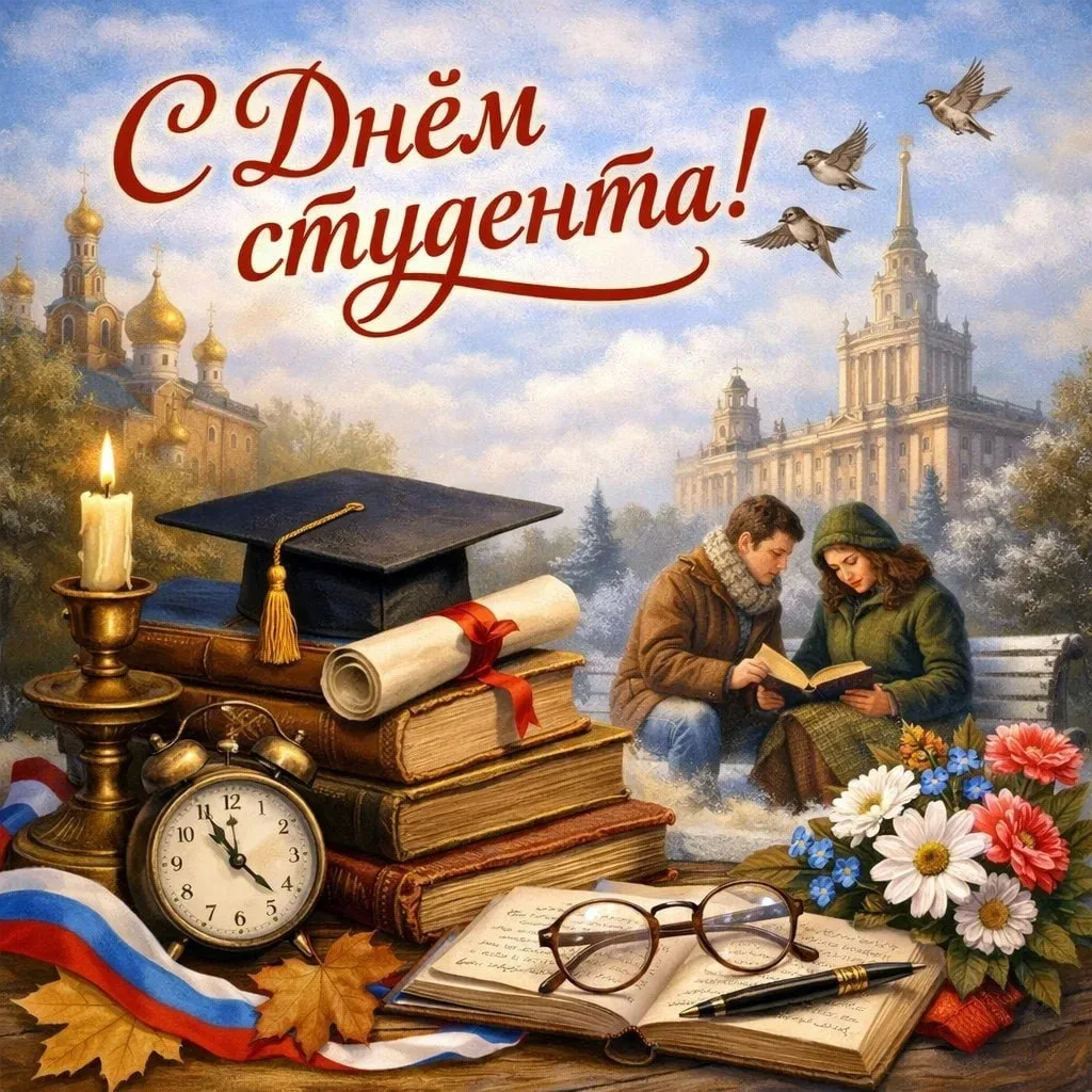 Студентам этот день желает лёгкой учёбы, удачных экзаменов, ясной головы и смелых планов. Пусть знания даются с интересом, а любые трудности превращаются в ценный опыт 📚✨