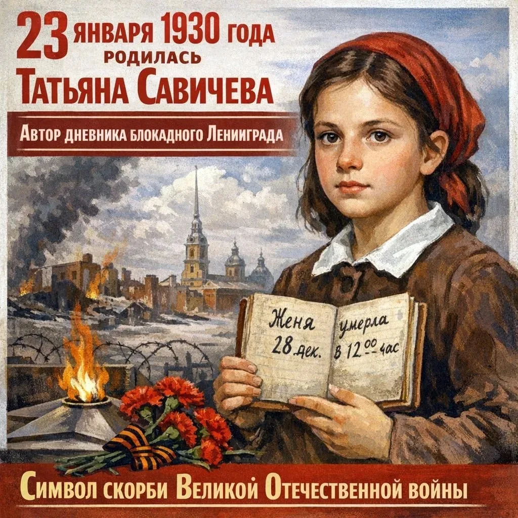 Татьяна Николаевна Савичева — советская школьница, чьё имя навсегда стало символом боли и трагедии блокадного Ленинграда. Она родилась 23 января 1930 года и прожила всего 14 лет, но её короткая жизнь оставила глубокий след в истории Великой Отечественной войны.