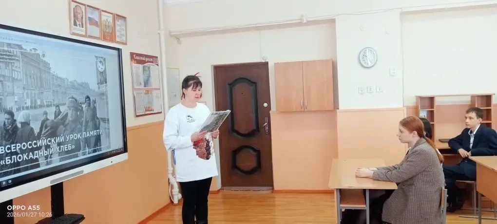 🍞 Для ребят 9 классов Евгения Викторовна Лаптева, специалист по работе с молодежью, провела акцию «Блокадный хлеб», рассказав о том, сколько было положено хлеба для людей блокадного Ленинграда.
