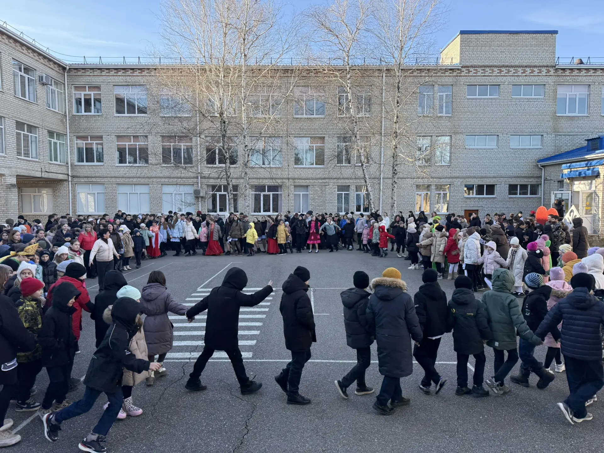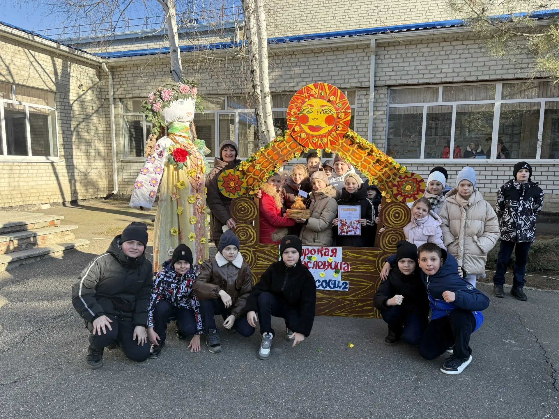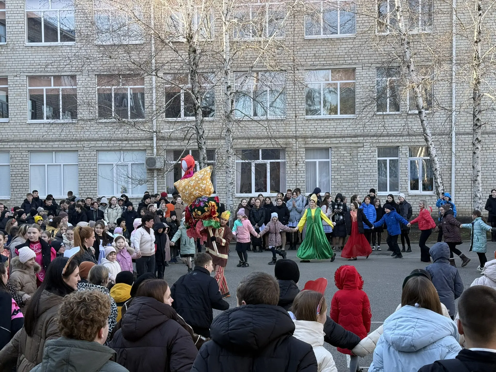 🌟 Ребята украсили столы в русском народном стиле и угощали блинами всех, а также устроили большой хоровод во дворе школы.