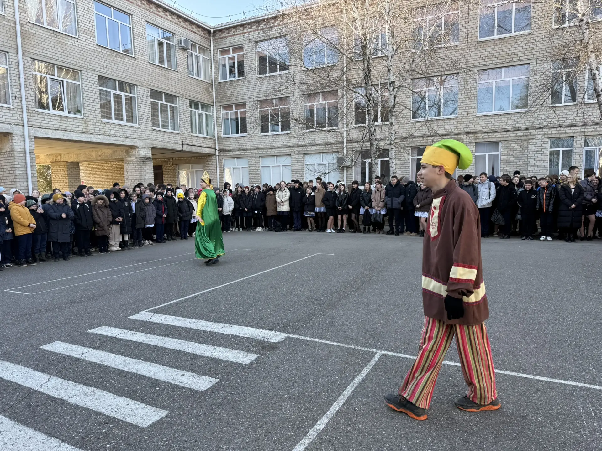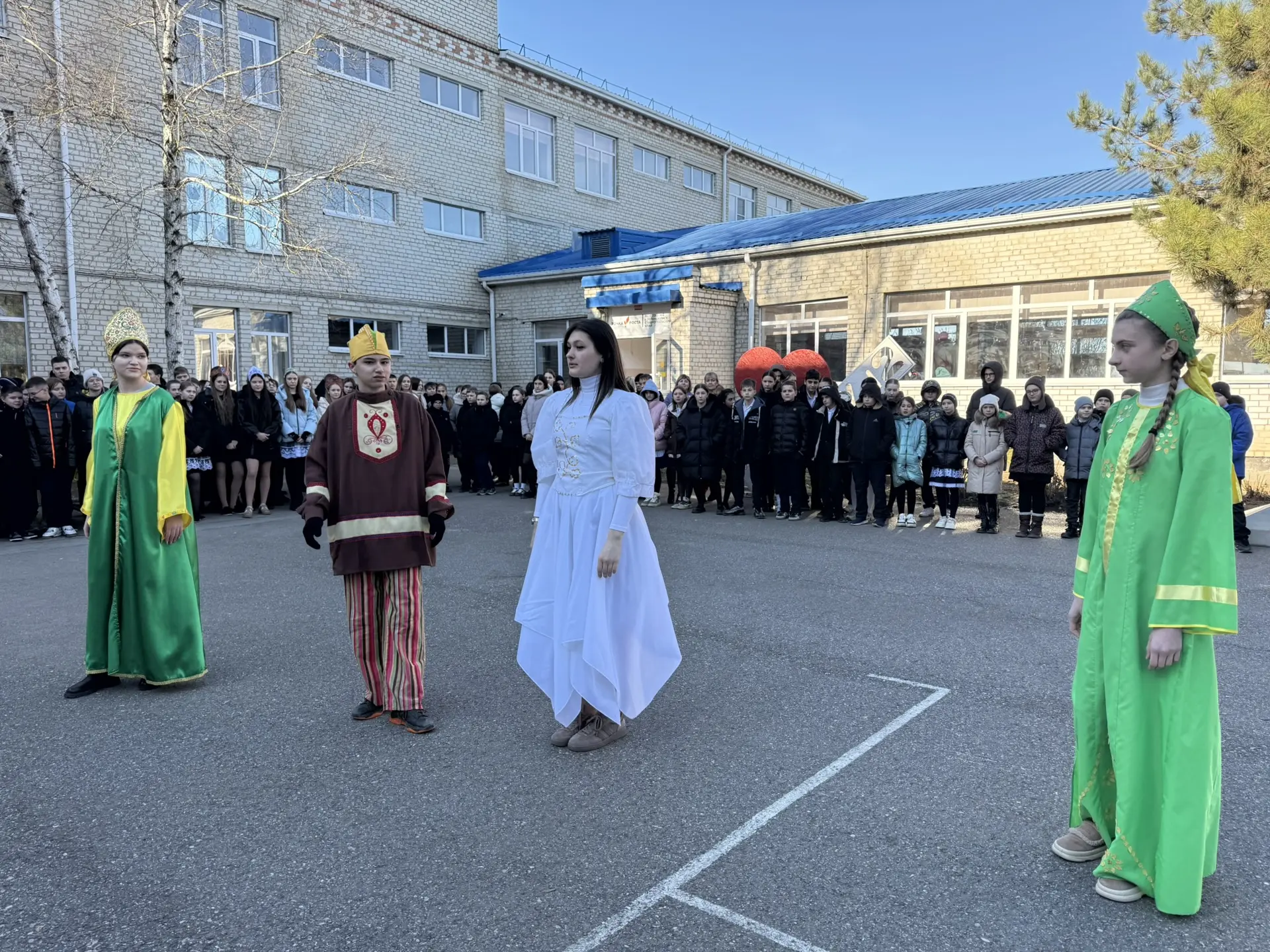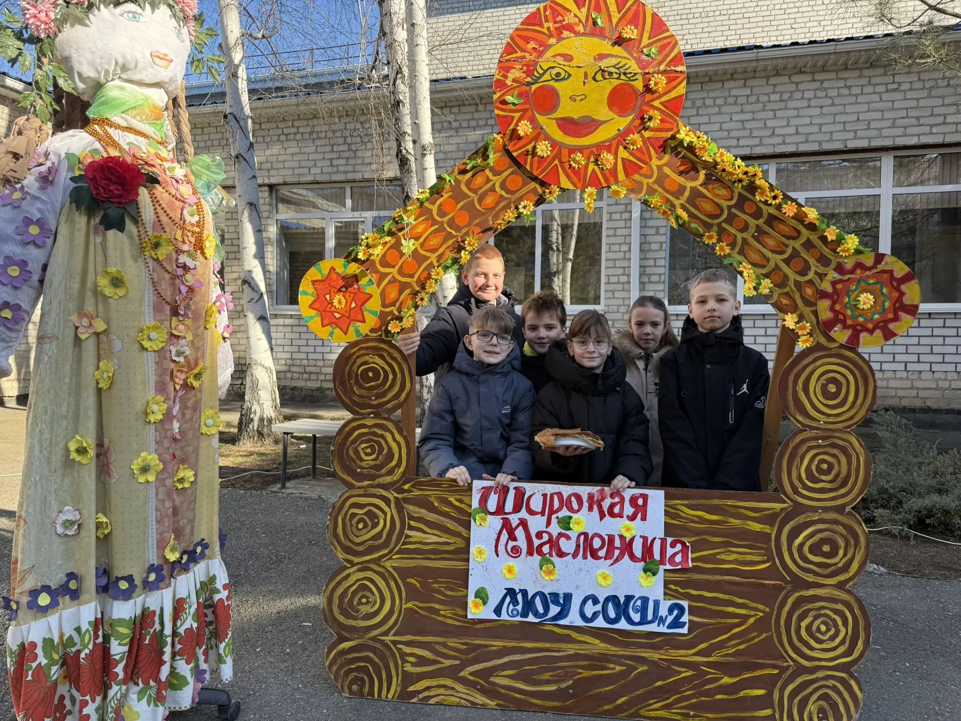 🌟 Ребята украсили столы в русском народном стиле и угощали блинами всех, а также устроили большой хоровод во дворе школы.