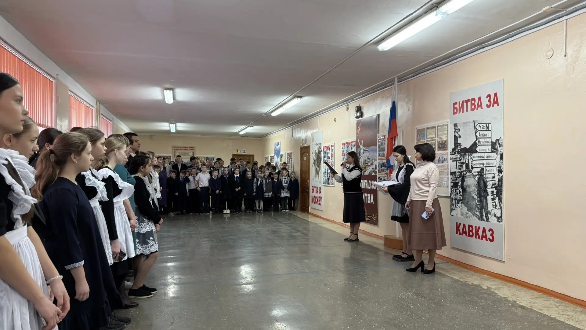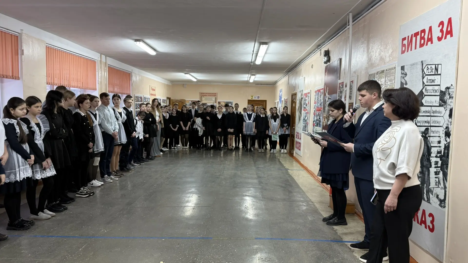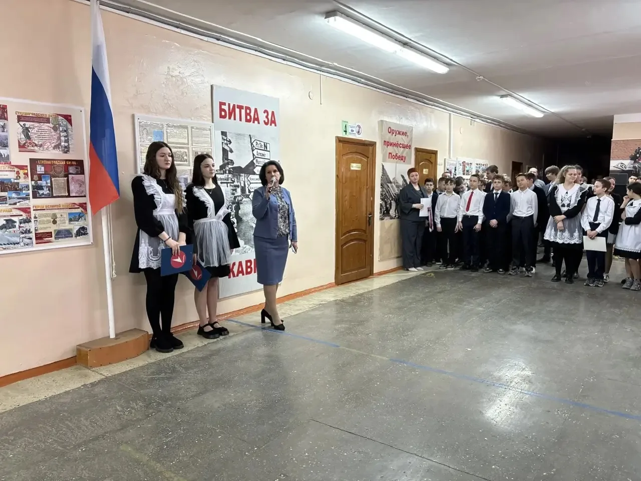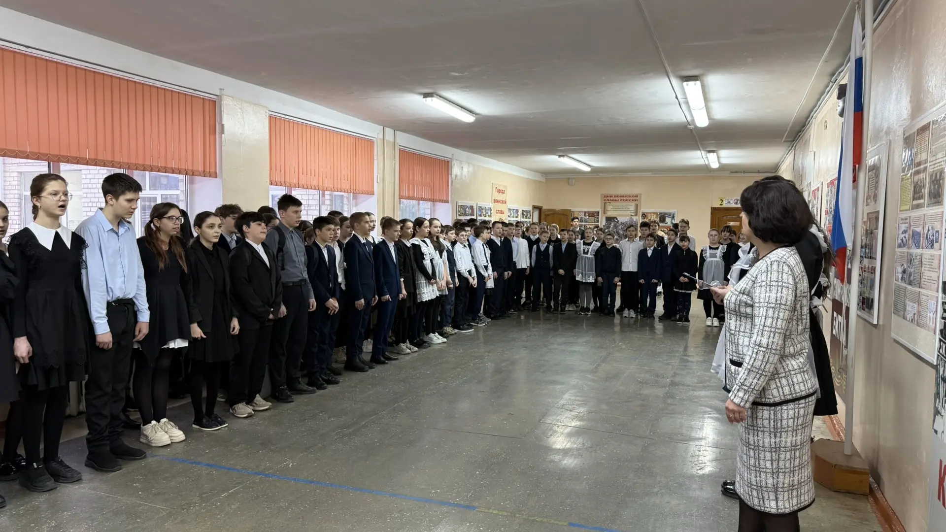 🗣️ На линейке был объявлен месячник оборонно-массовой и военно-патриотической работы, в рамках которого учащихся могут принять участие в «Классных встречах» с участниками СВО, стать организаторами и участниками квестов, посвященных битвам во время Великой Отечественной войны, а также собрать гуманитарную помощь для военнослужащих.