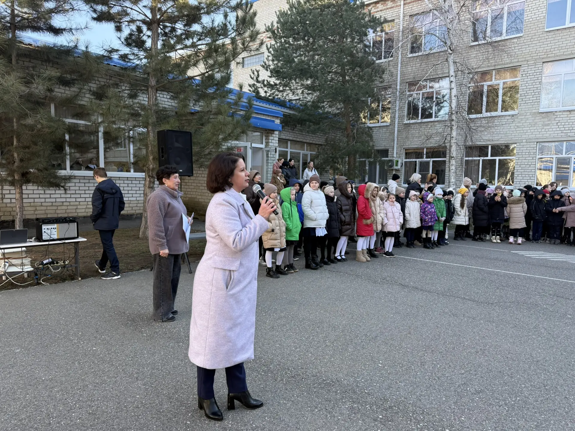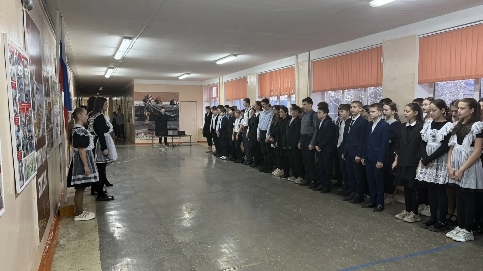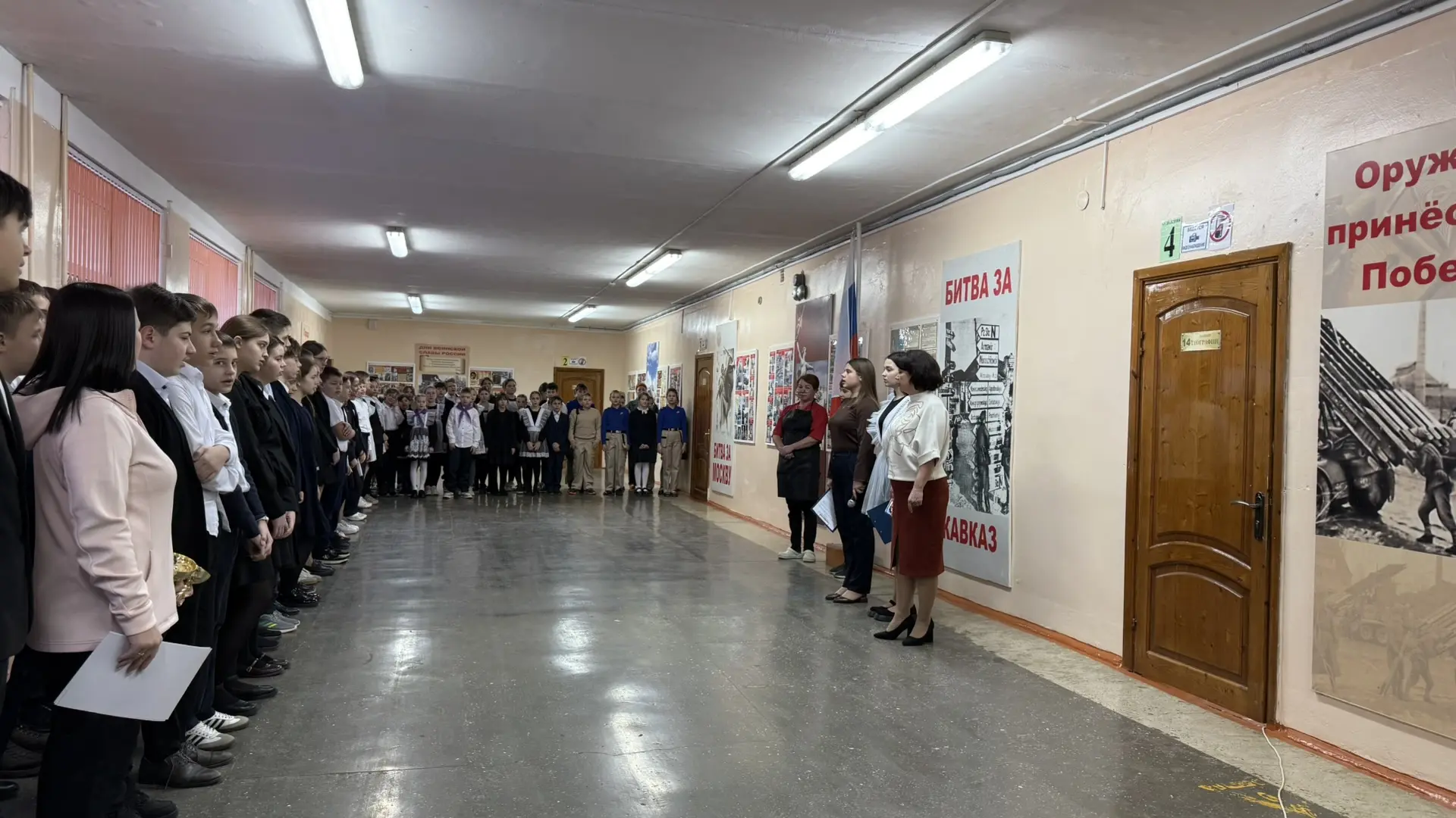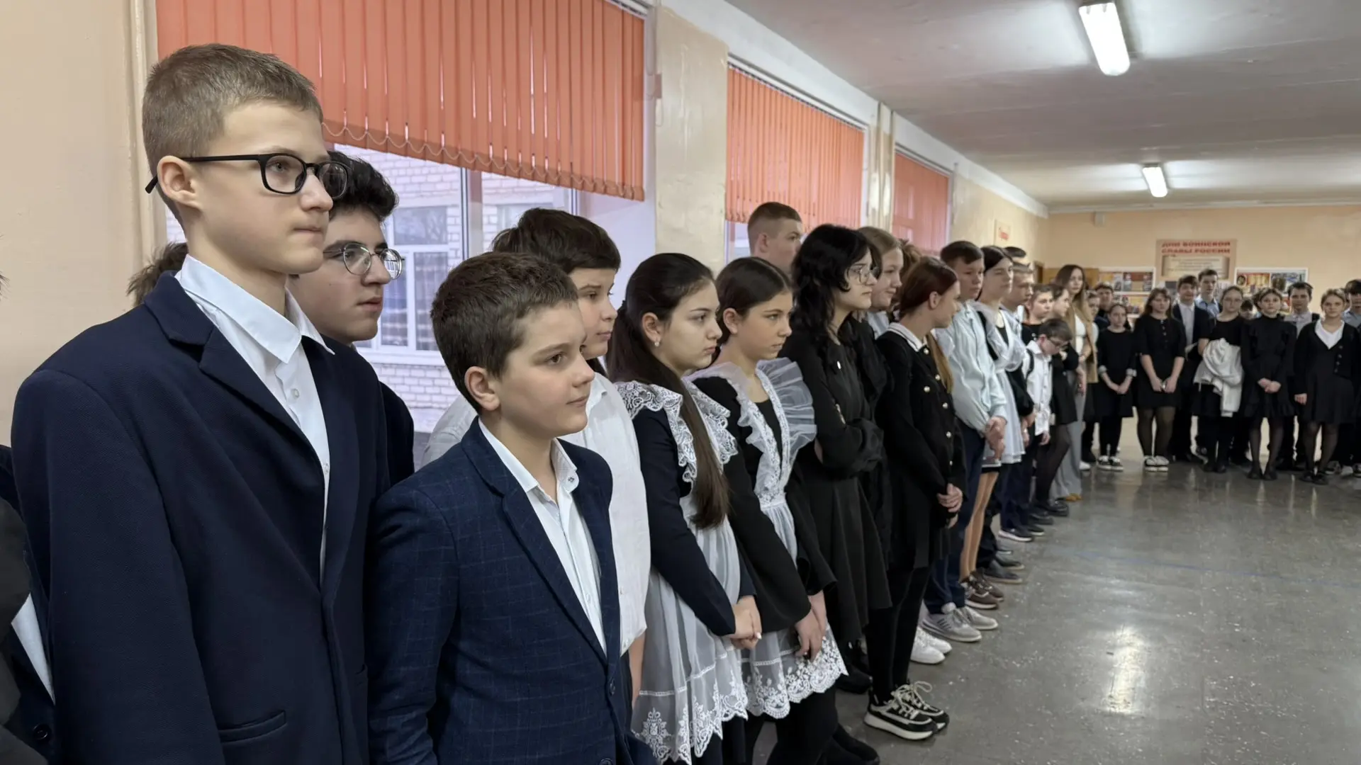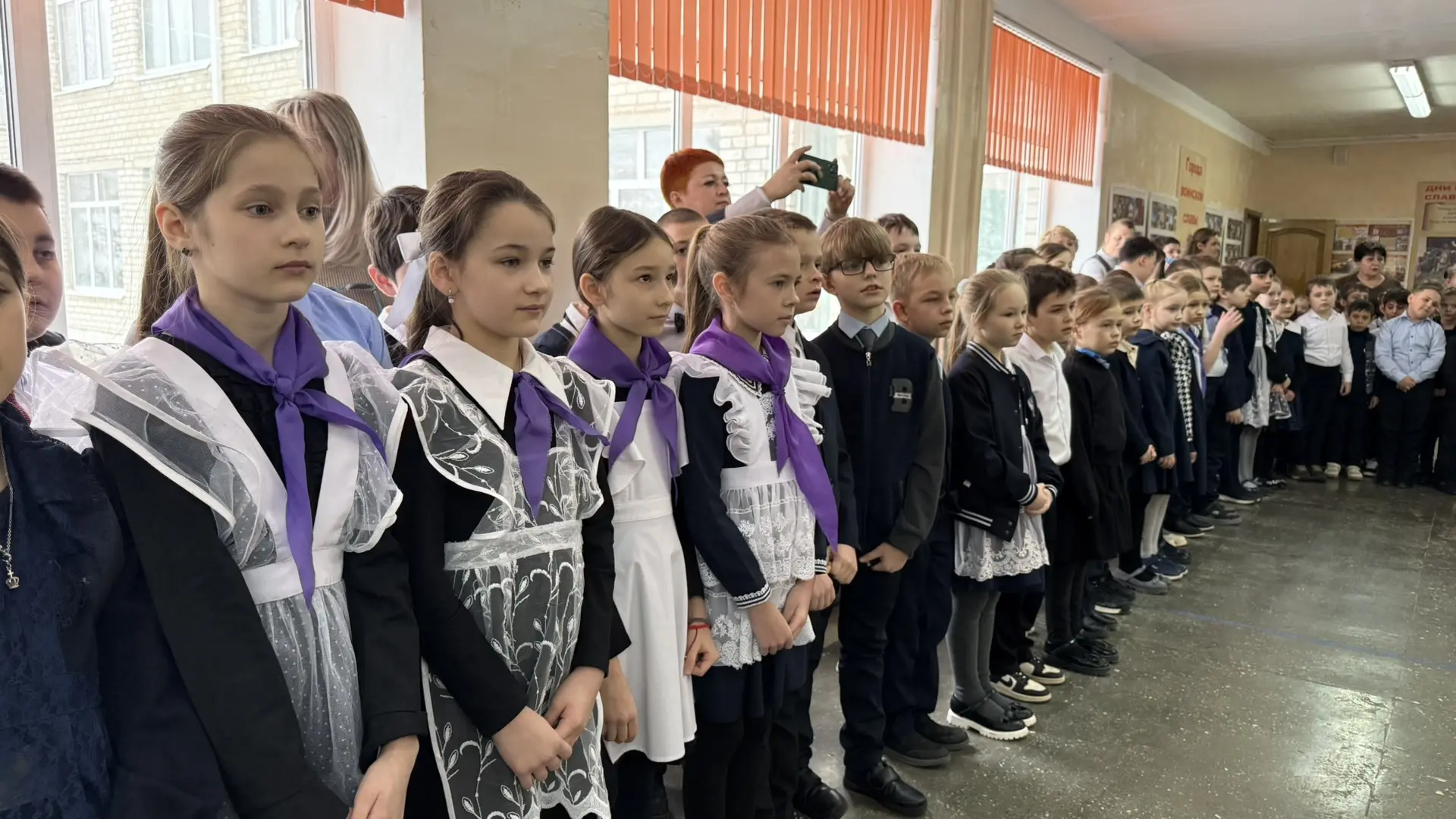 🗣️ На линейке был объявлен месячник оборонно-массовой и военно-патриотической работы, в рамках которого учащихся могут принять участие в «Классных встречах» с участниками СВО, стать организаторами и участниками квестов, посвященных битвам во время Великой Отечественной войны, а также собрать гуманитарную помощь для военнослужащих.