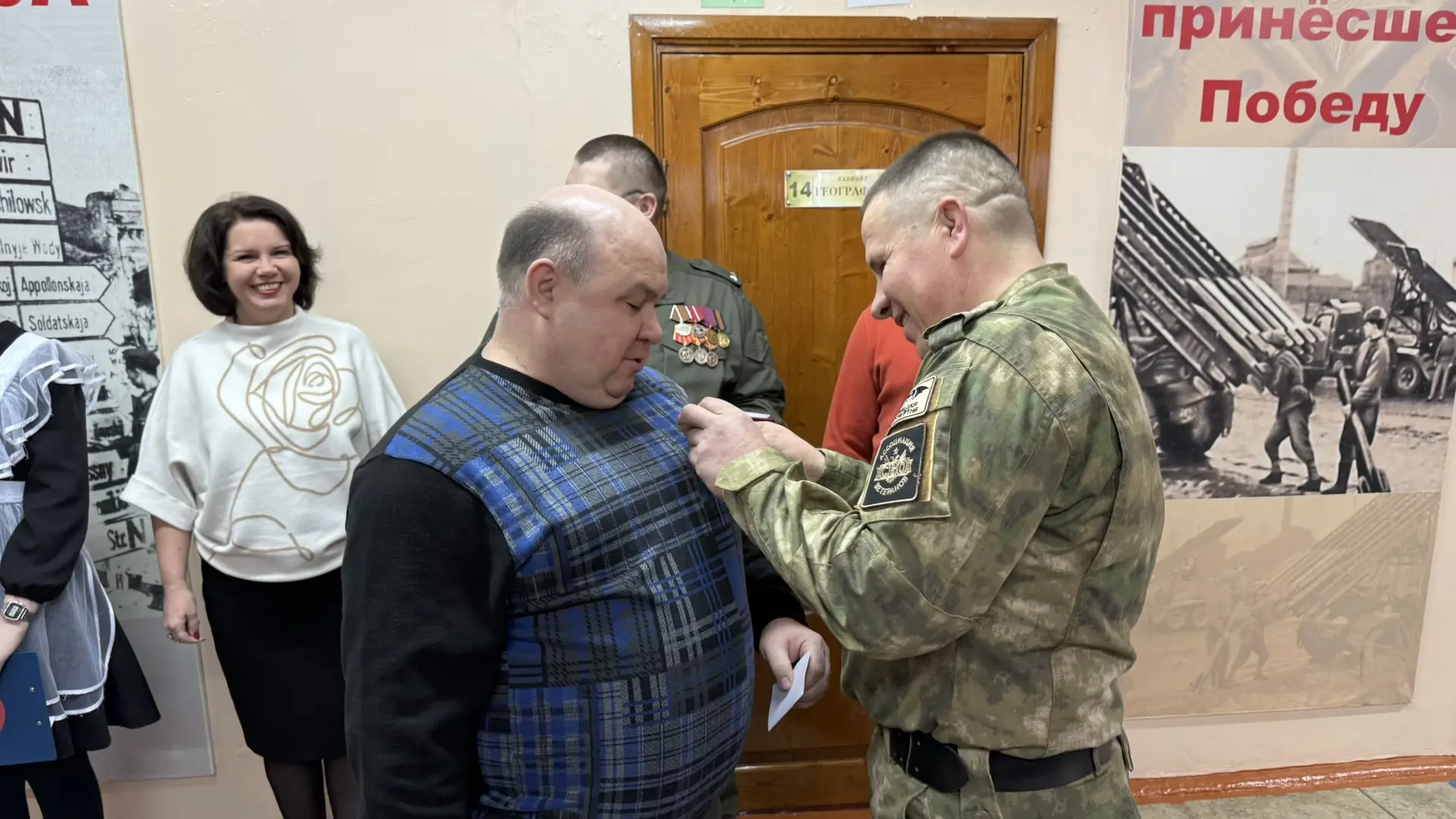 🎖️ Также, в преддверии 23 февраля, на мероприятии Сергею Николаевичу Губанову, учителю технологии, ветерану боевых действий, вручили медаль «За ратную доблесть» за заслуги в защите Отечества, мужество и отвагу, проявленные при исполнении воинского долга в условиях, сопряженных с риском для жизни.