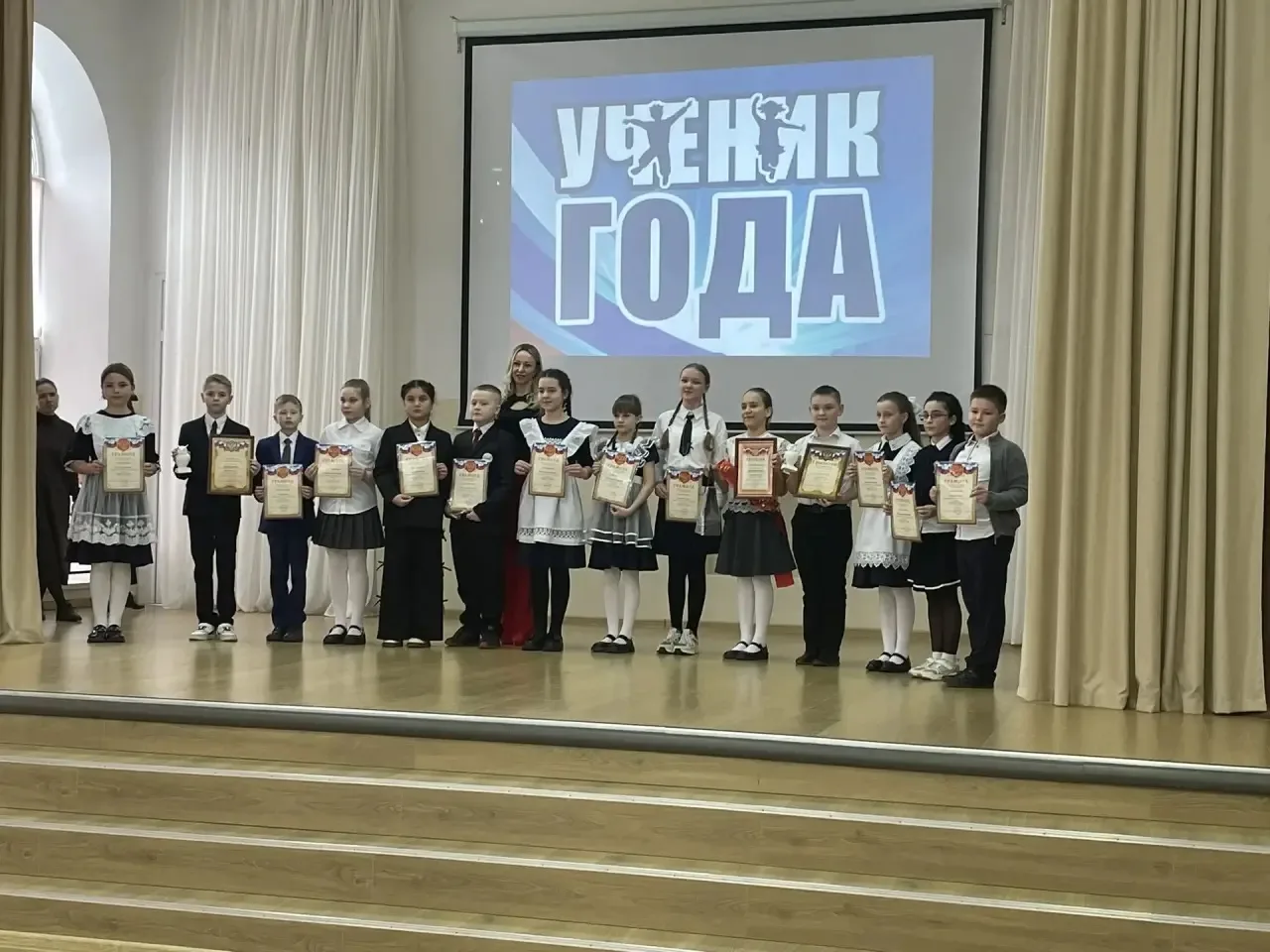 Также на линейке были вручены дипломы Разгуляевой Марии за первое и Крюковым Веронике и Ростиславу за второе место в региональном этапе Всероссийского конкурса школьных музеев.